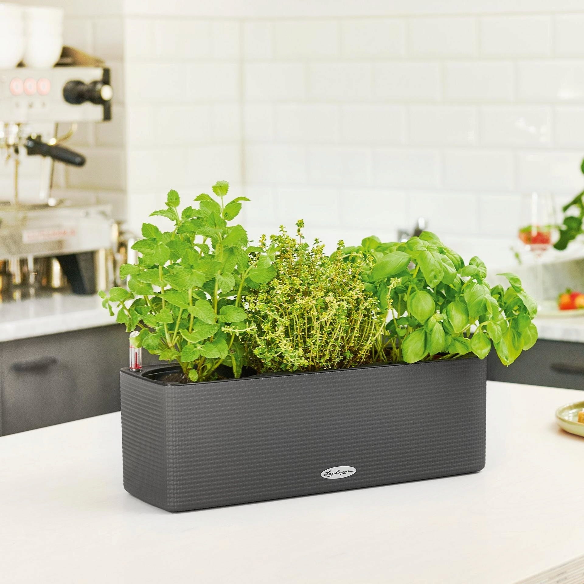 CUBE Color Triple marki Lechuza oferuje miejsce na trzy doniczki produkcyjne. Można je w prosty sposób umieścić wewnątrz bez konieczności przesadzania roślin. Dzięki sprawdzonemu systemowi knotowemu LECHUZA, rośliny są długotrwale i optymalnie zaopatrywane w wodę.