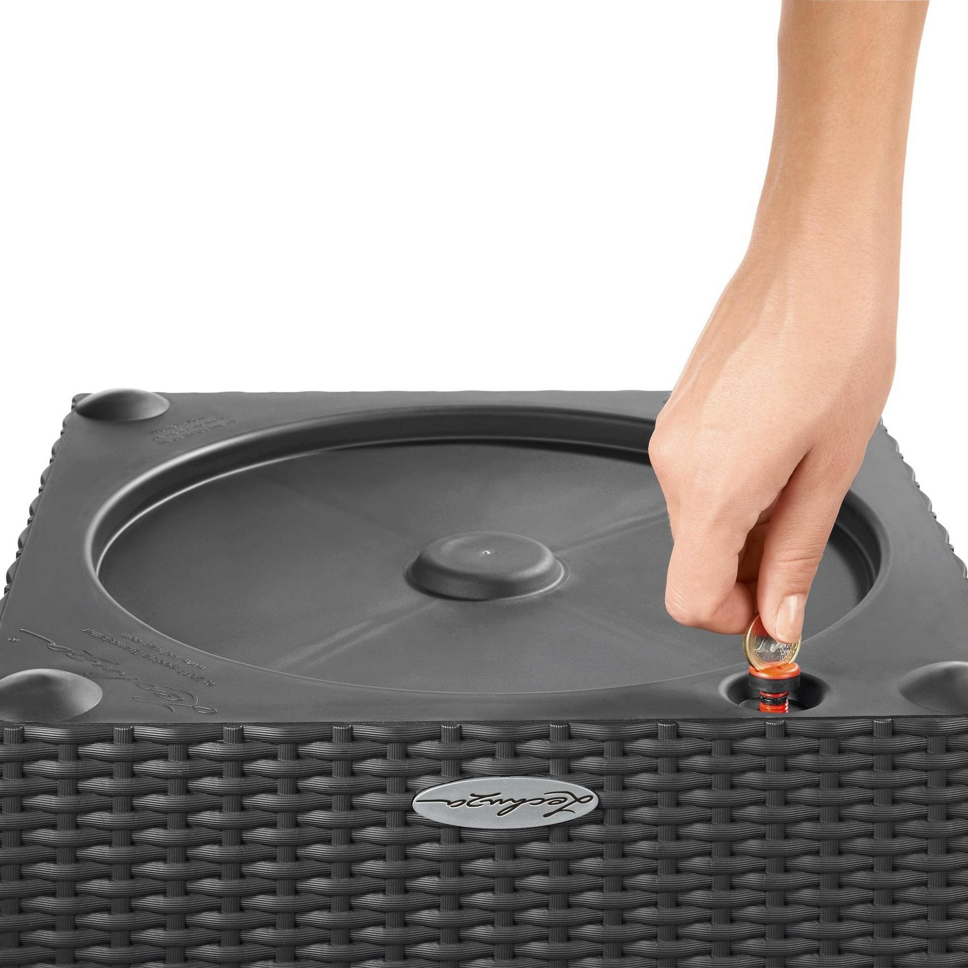- Śruba w dnie może zostać usunięta w przypadku użytkowania na zewnątrz, dzięki czemu nadmiar wody deszczowej może odpłynąć