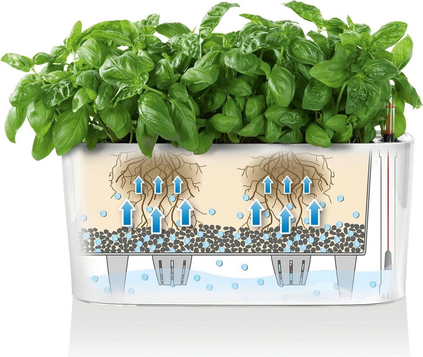 Wskaźnik poziomu wody dokładnie pokazuje, kiedy należy ponownie podlać roślinę. Dzięki temu o niczym nie zapomnisz.