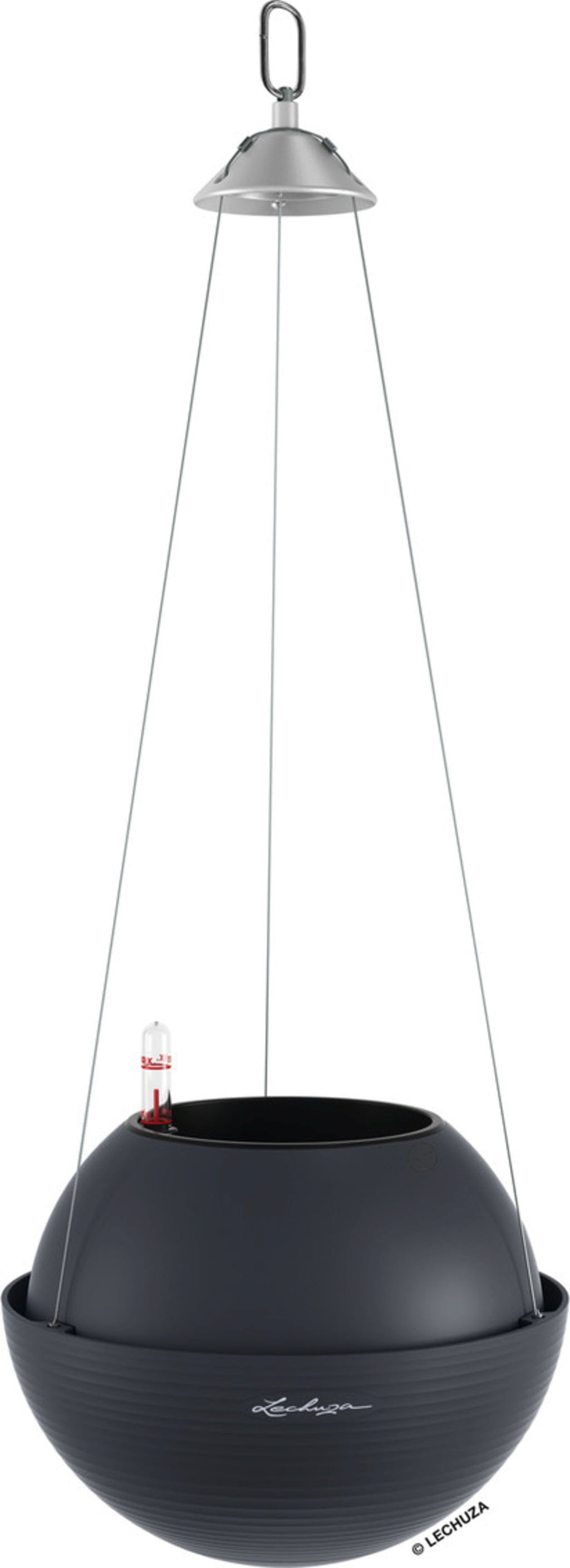 W zestawie: Zestaw „wszystko w jednym”, składający się z doniczki, wyjmowanej wkładki do roślin, zestawu do podlewania Lechuza i zawieszenia ze stali nierdzewnej