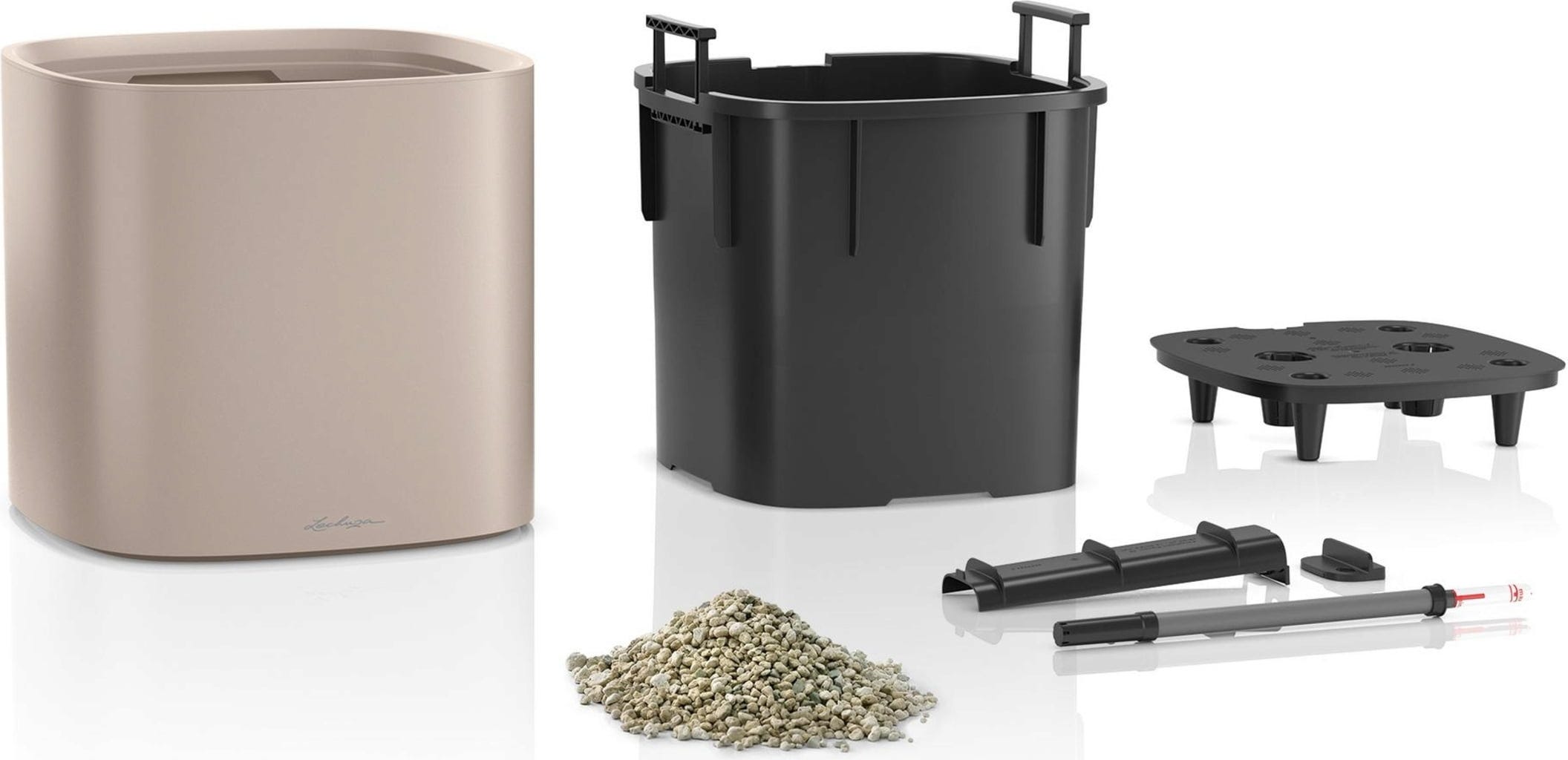 Wskazówka: Zakres dostawy obejmuje doniczkę, wkład do sadzenia oraz system nawadniania. Dodatkowe elementy do przechowywania, jak również praktyczna podstawka na kółkach, są dostępne osobno w sekcji "Akcesoria".