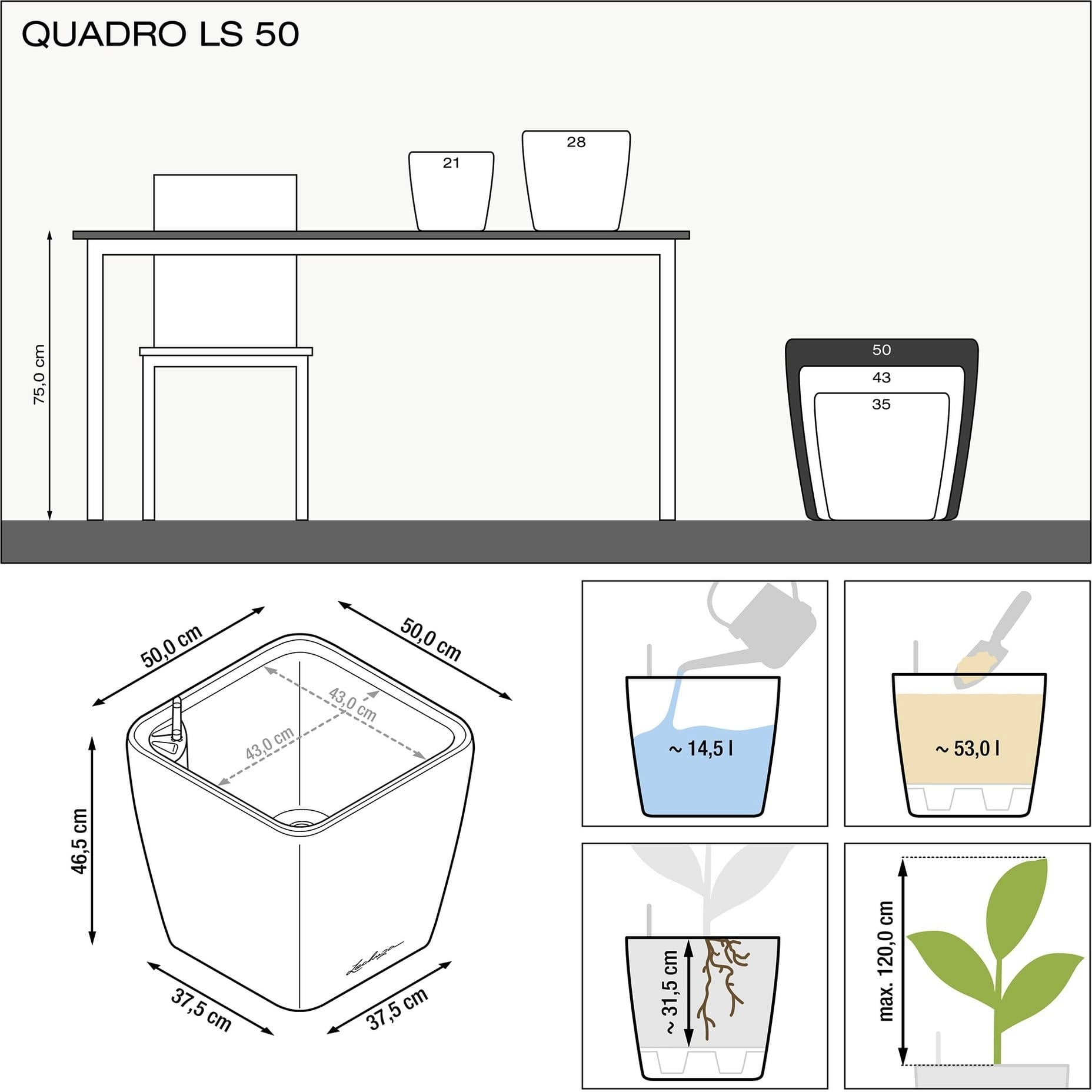 | Linie produktów Lechuza: | Quadro |