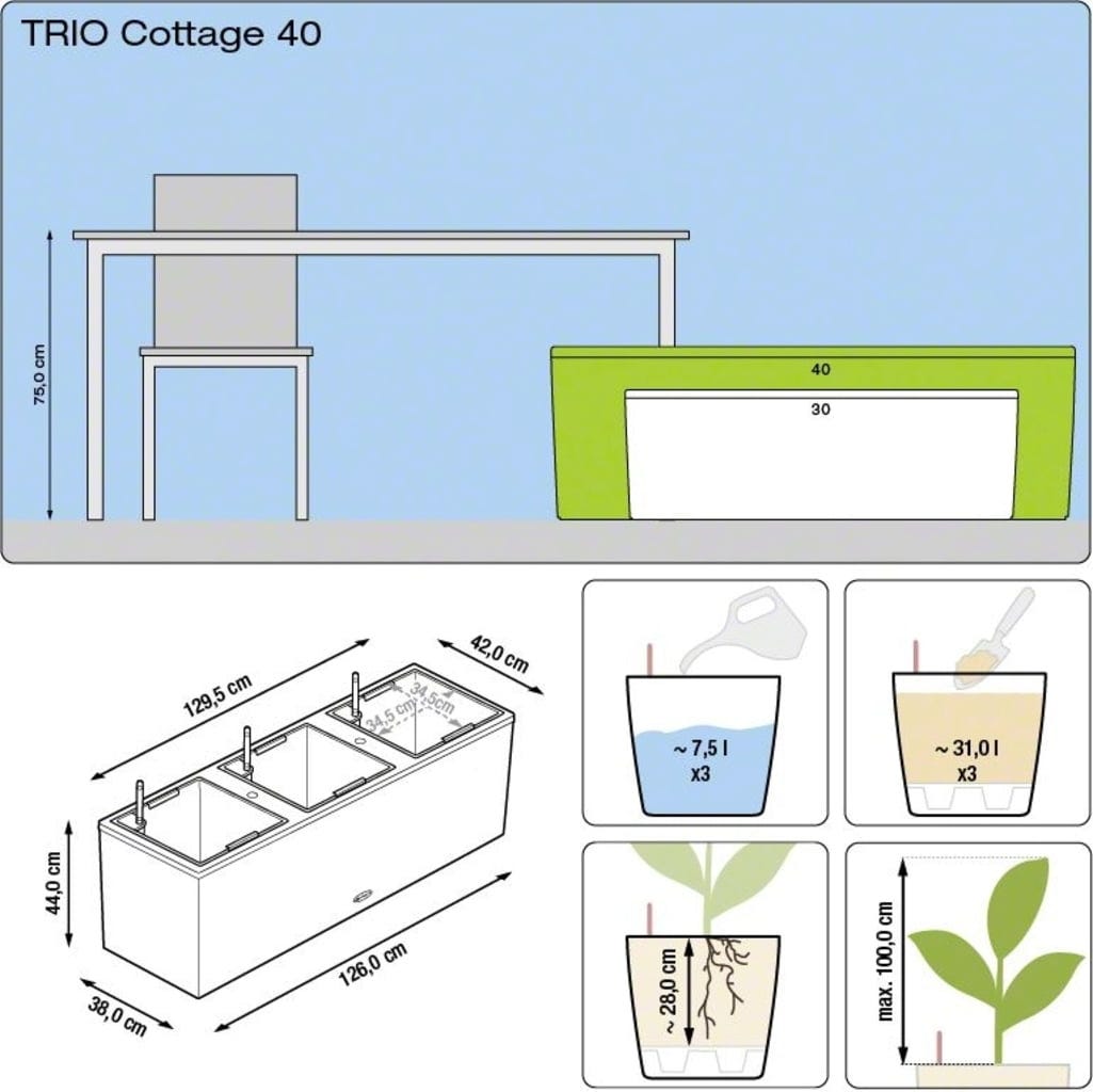 - Rozmiar wkładu do sadzenia: ok. 34,5 x 34,5 cm (3x)