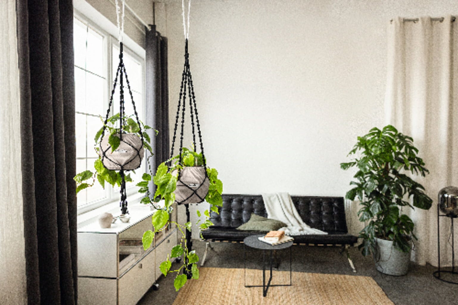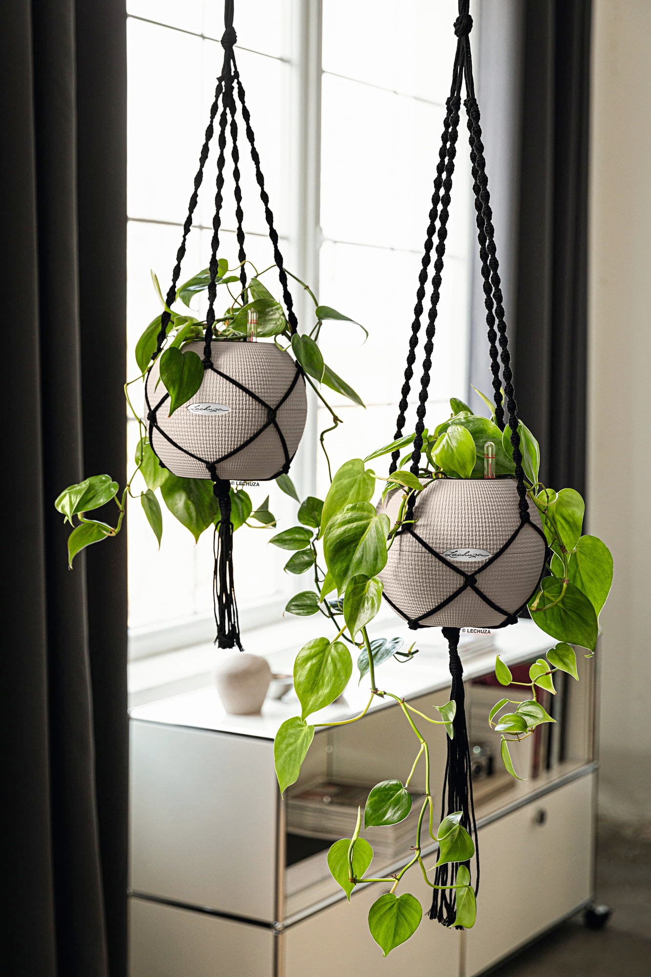 Zakres dostawy: Zawieszenie z makramy. Doniczki można zamówić osobno w dziale "Akcesoria".