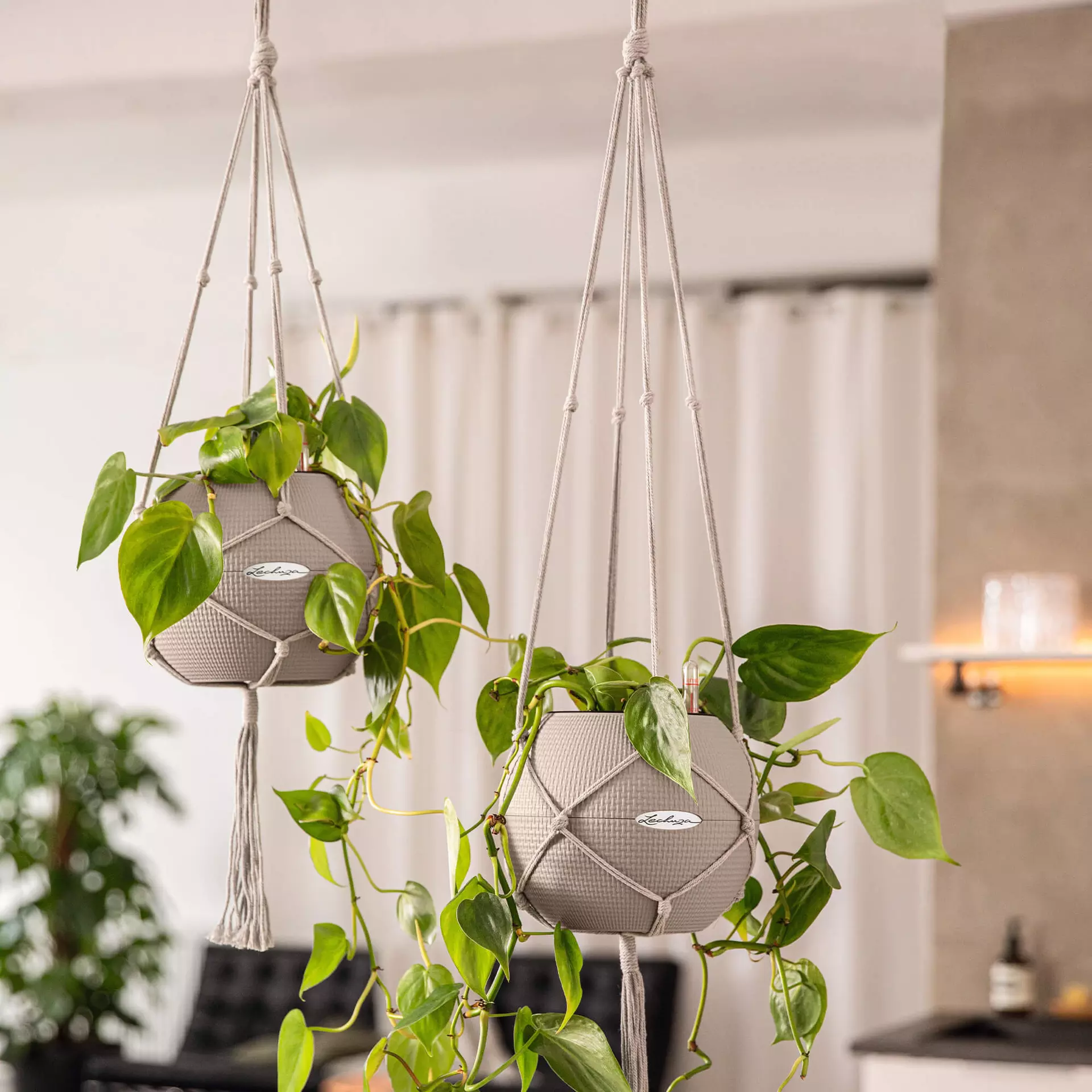 • Prosty montaż: zawieś makramę i przymocuj donicę