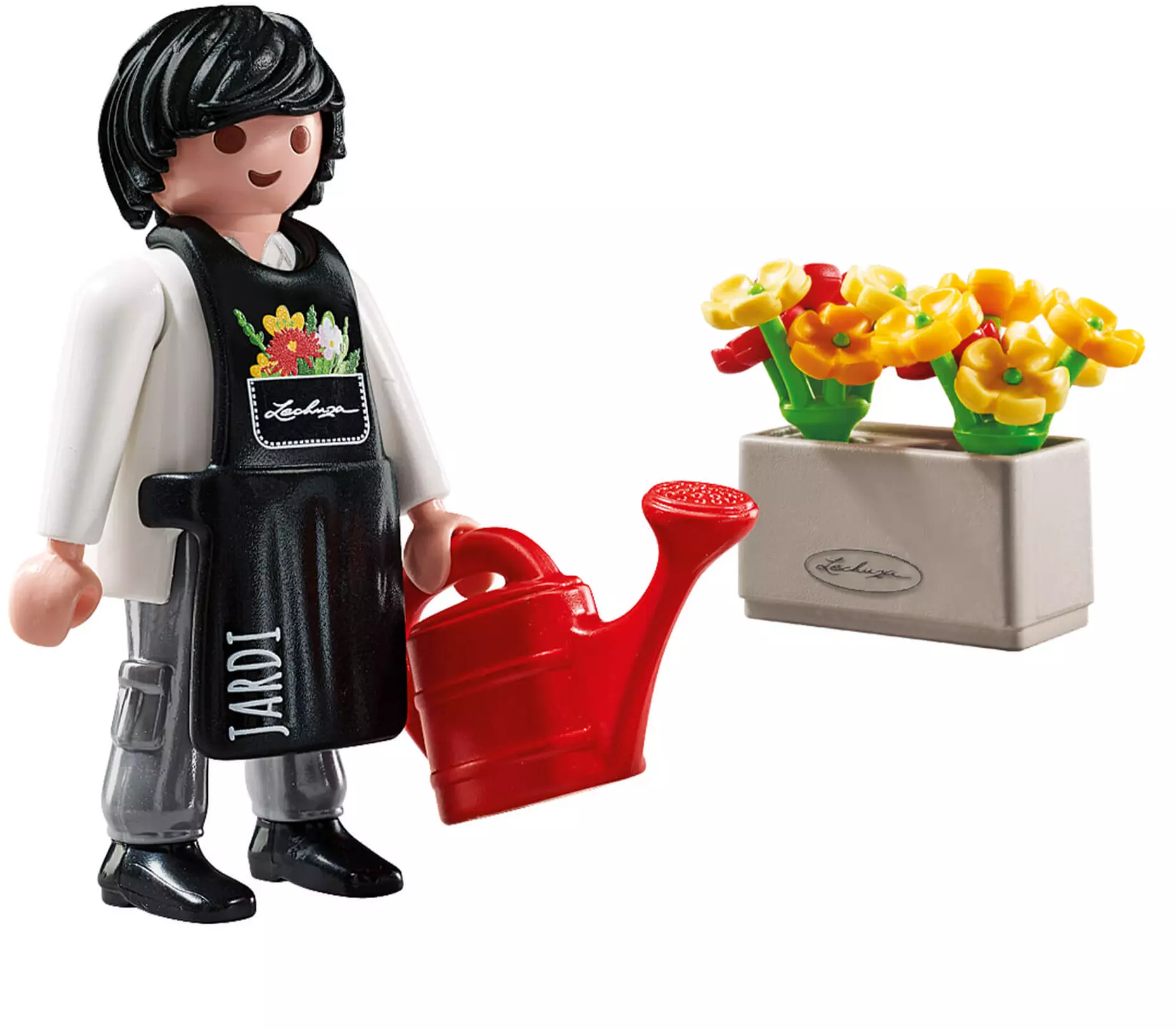 - Figurka Playmobil ze zdejmowanym fartuchem, konewką, doniczką i kwiatami