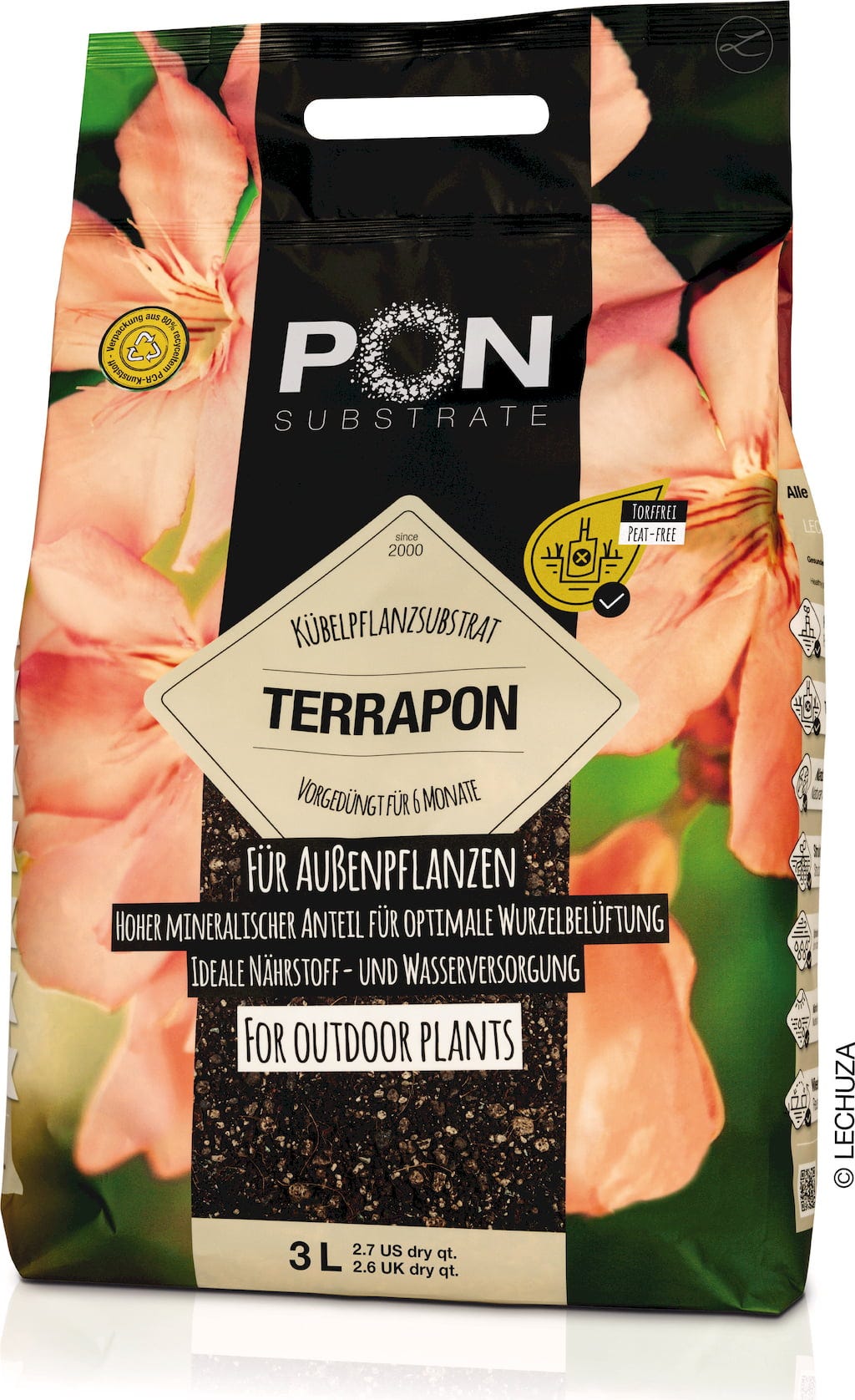 • Zakres dostawy: 1x podłoże roślinne LECHUZA Terra-PON, składniki: Humus, pokruszona keramzyt, pumeks, nawóz