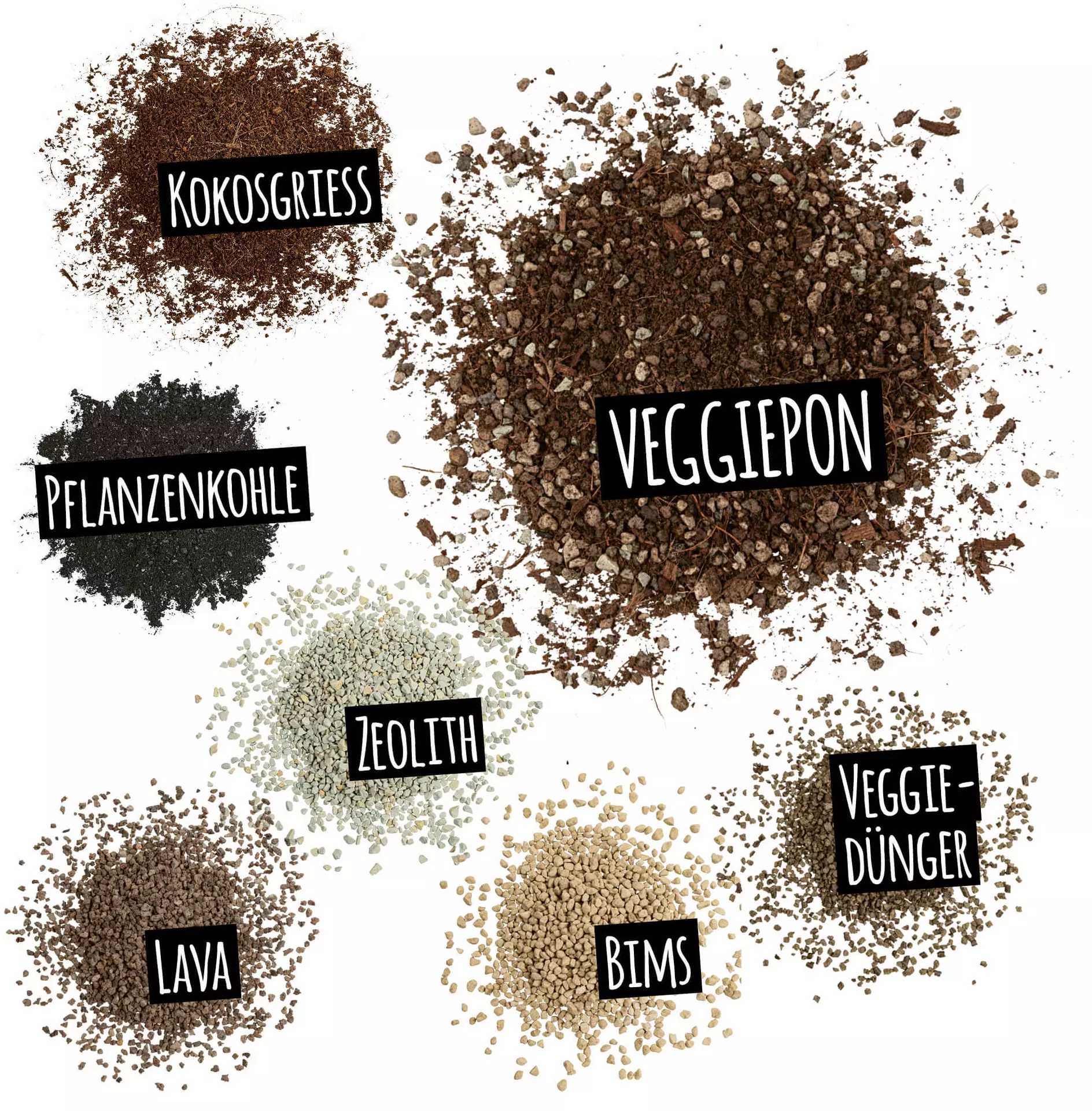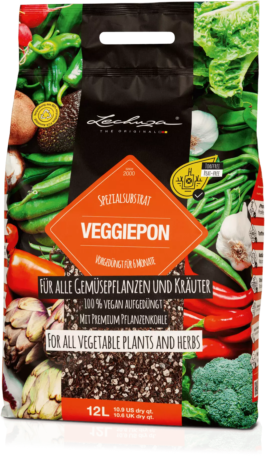 Bogate w składniki odżywcze Veggie-Pon jest wzbogacone całkowicie wegańskim nawozem i wysokiej jakości biowęglem dla uzyskania najlepszych rezultatów.