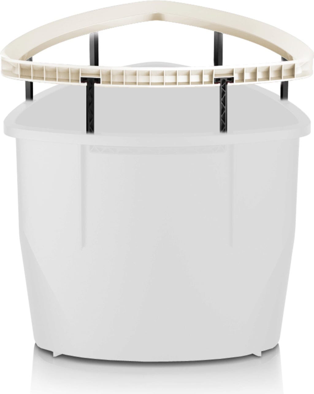 Rama uchwytu jest w tym samym kolorze co doniczka i jest po prostu opuszczana na miejsce po użyciu.