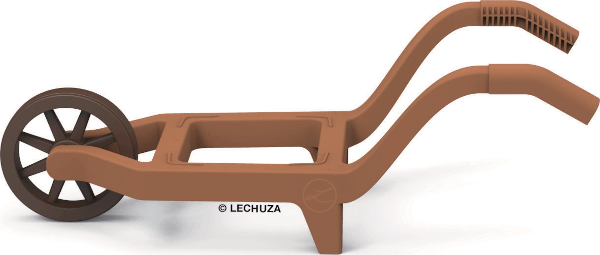 Wytrzymała taczka, wykonana z wysokiej jakości tworzywa sztucznego, może być łączona na wiele sposobów, aby upiększyć ogródki i tarasy.