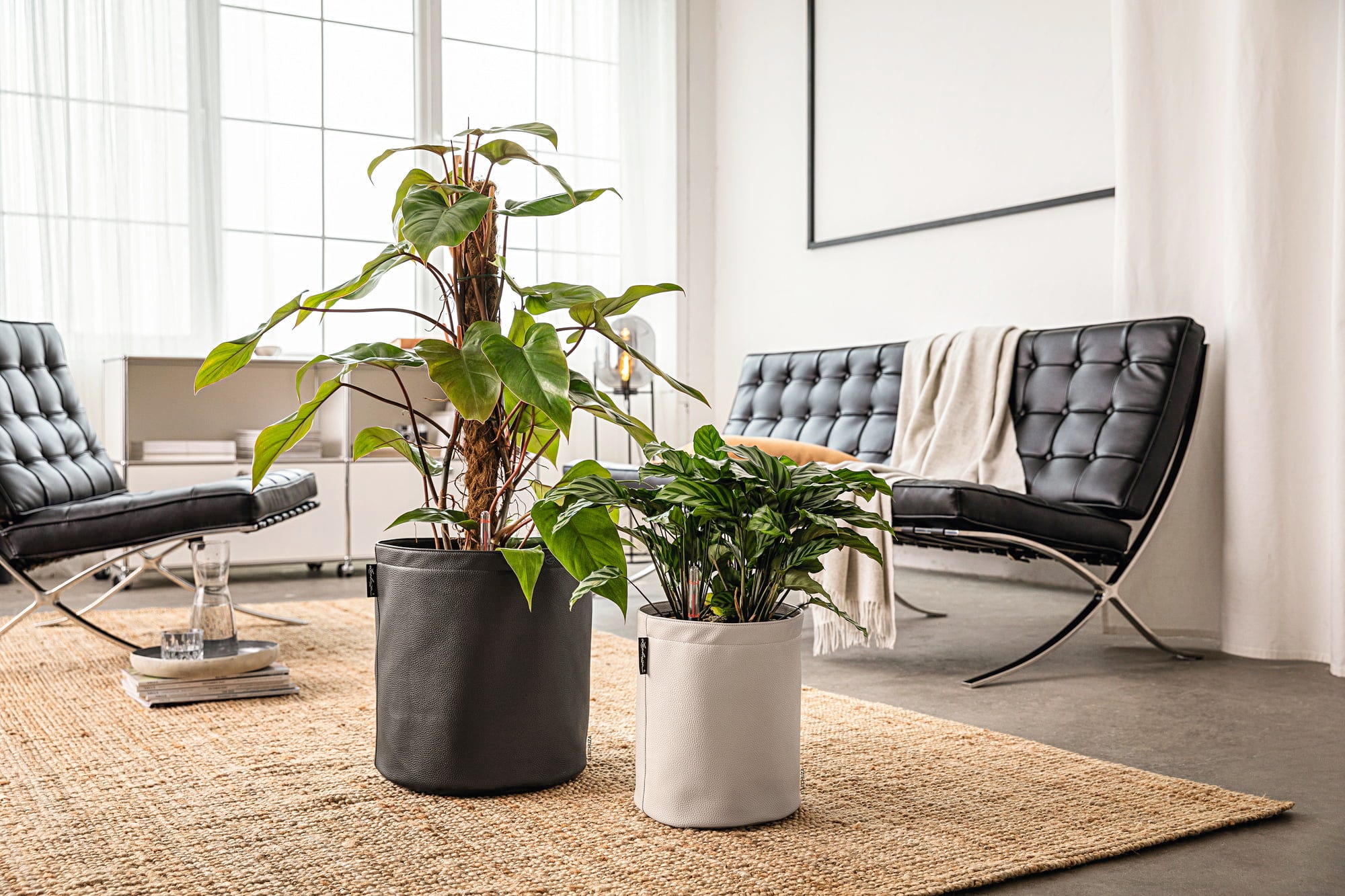 Dzięki wytłaczanemu wyglądowi, niezwykłe donice "Trendcover" tworzą stylową atmosferę w mieszkaniu o modnym fabrycznym wyglądzie. Kompletny zestaw zawiera również funkcjonalną wkładkę na rośliny ze zintegrowanymi uchwytami do przenoszenia i sprytnym systemem nawadniania Lechuza. Ułatwia to wymianę pokrywy w dowolnym momencie, a wkład z roślinami można błyskawicznie przenieść do innej donicy.