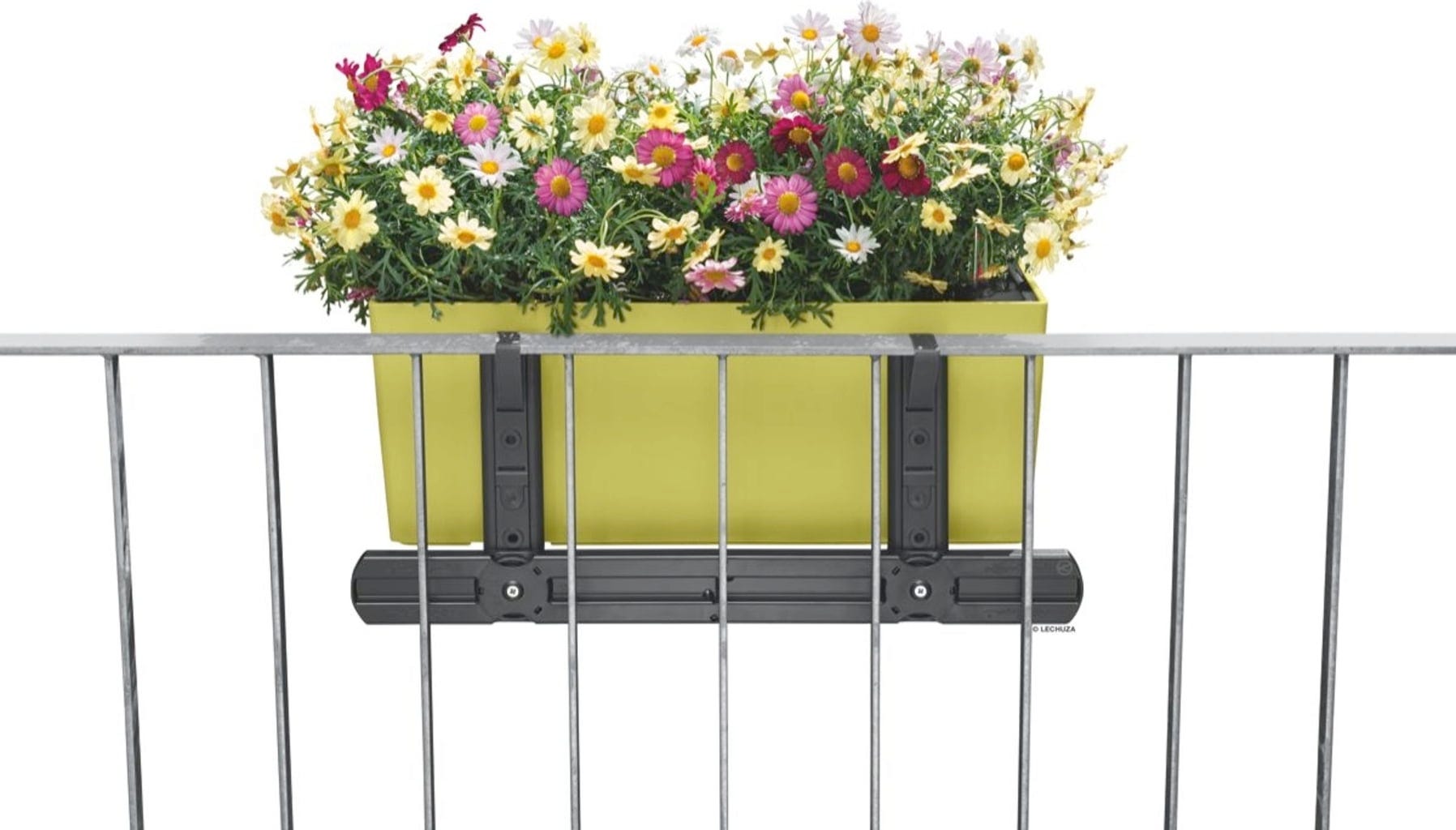 W połączeniu z uchwytem do skrzynek balkonowych Lechuza doniczki „Balconera” w rozmiarach 50 i 80 cm można teraz montować również na balustradach o dużym rozstawie szczebli.