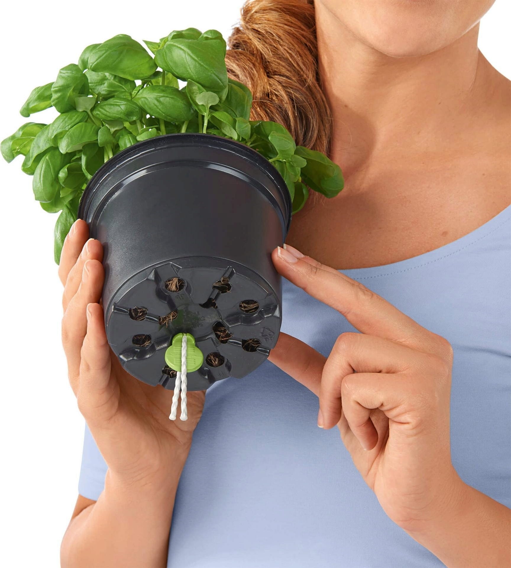 Dzięki patyczkom do podlewania zioła są zawsze pod dobrą opieką, bez konieczności ciągłego myślenia o podlewaniu. Są one po prostu wkładane na dno doniczki - nie ma potrzeby przesadzania rośliny. Następnie wystarczy umieścić doniczkę w pasującej doniczce Lechuza i podlać - gotowe!