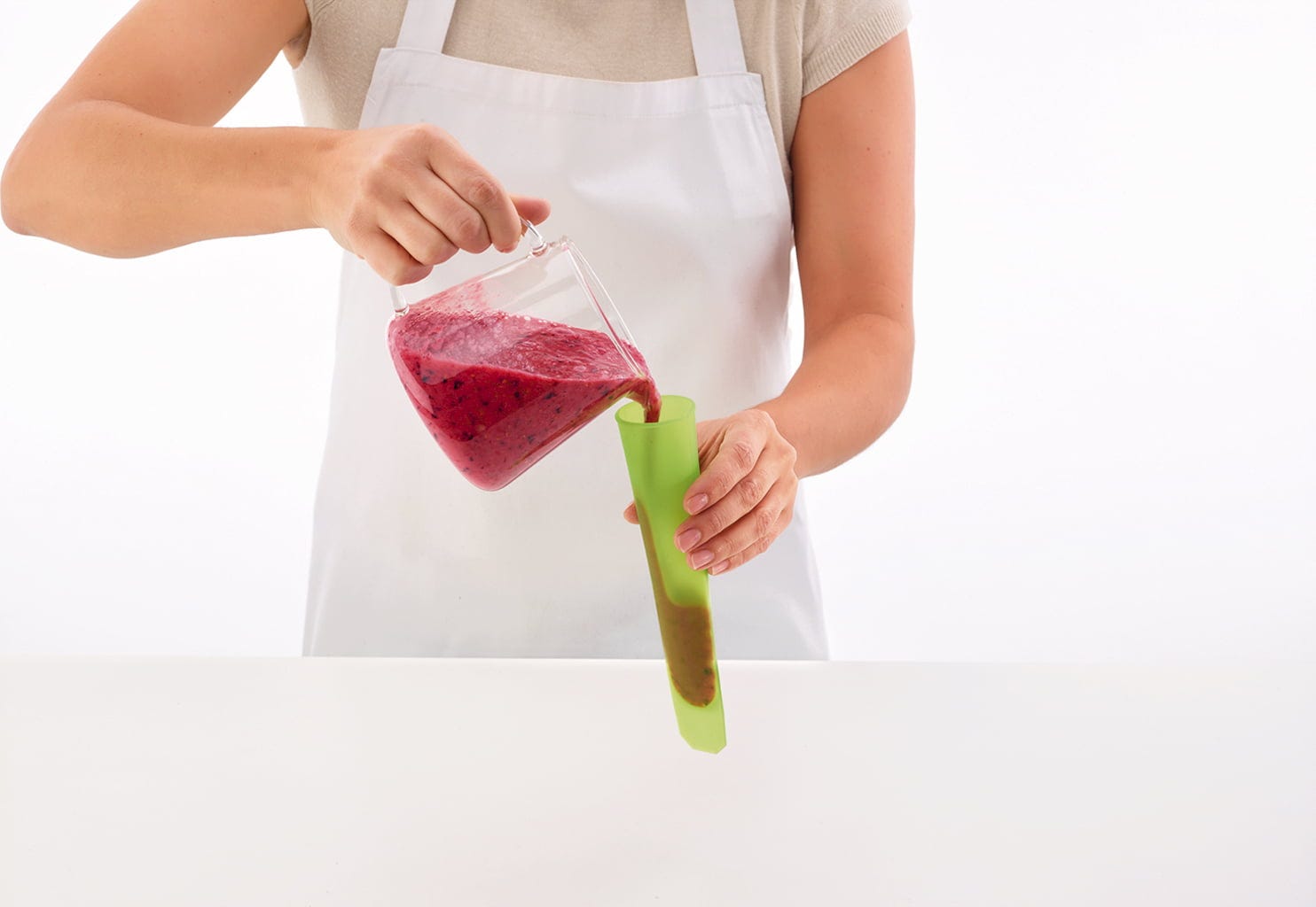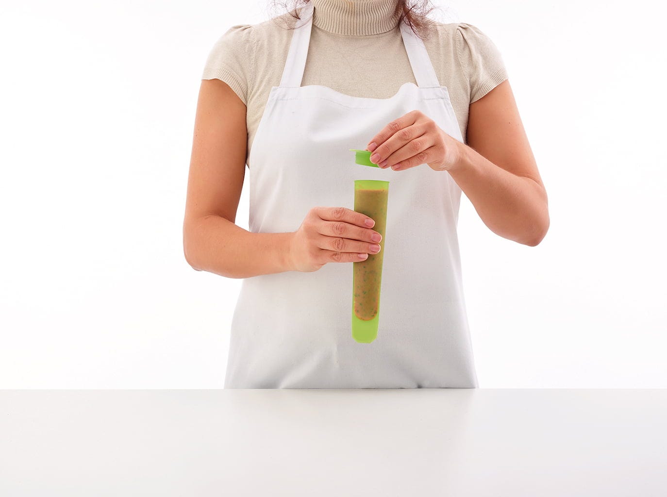 Przygotuj kolorową różnorodność pysznych smakołyków razem z dziećmi. Czy to czysty sok owocowy, kremowy jogurt czy bogaty w witaminy smoothie - to Ty decydujesz, które ulubione składniki trafią do foremki. Formy wykonane z wysokiej jakości silikonu platynowego są nie tylko cudownie lekkie, ale także wyjątkowo higieniczne i oczywiście wielokrotnego użytku. Każda forma ma bezpieczne uszczelnienie, które niezawodnie zapewnia, że nic się nie rozleje ani nie wycieknie podczas zamrażania lub w podróży - idealne dla czystych rąk i wspaniałej zabawy w domową lodziarnię!