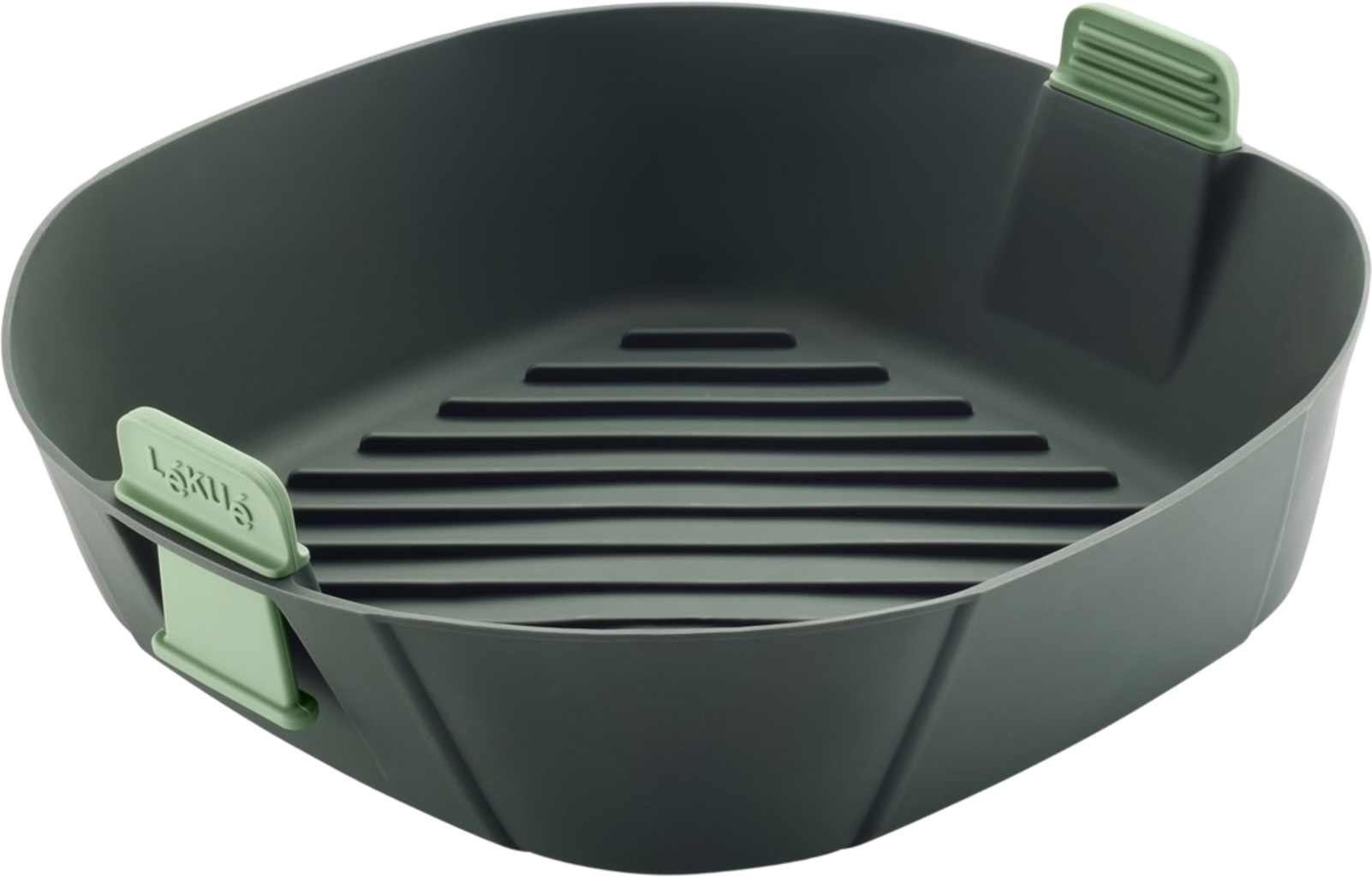 Kosz do frytownicy beztłuszczowej, Air Fryer od Lékué to praktyczny partner, który podniesie Twoje dania z tego urządzenia na nowy poziom. Jego sekret tkwi w elastycznej konstrukcji z elastycznymi narożnikami, która idealnie dopasowuje się do różnych rozmiarów i kształtów frytownic (idealny do urządzeń o pojemności od 5 l do 6,5 l), a tym samym optymalnie wykorzystuje przestrzeń do gotowania. Wysuwane, nieprzywierające uchwyty są szczególnie praktyczne i dobrze przemyślane: można je podnieść lub opuścić, aby uzyskać większą odległość od ciepła i bezpieczniejsze wyjmowanie.