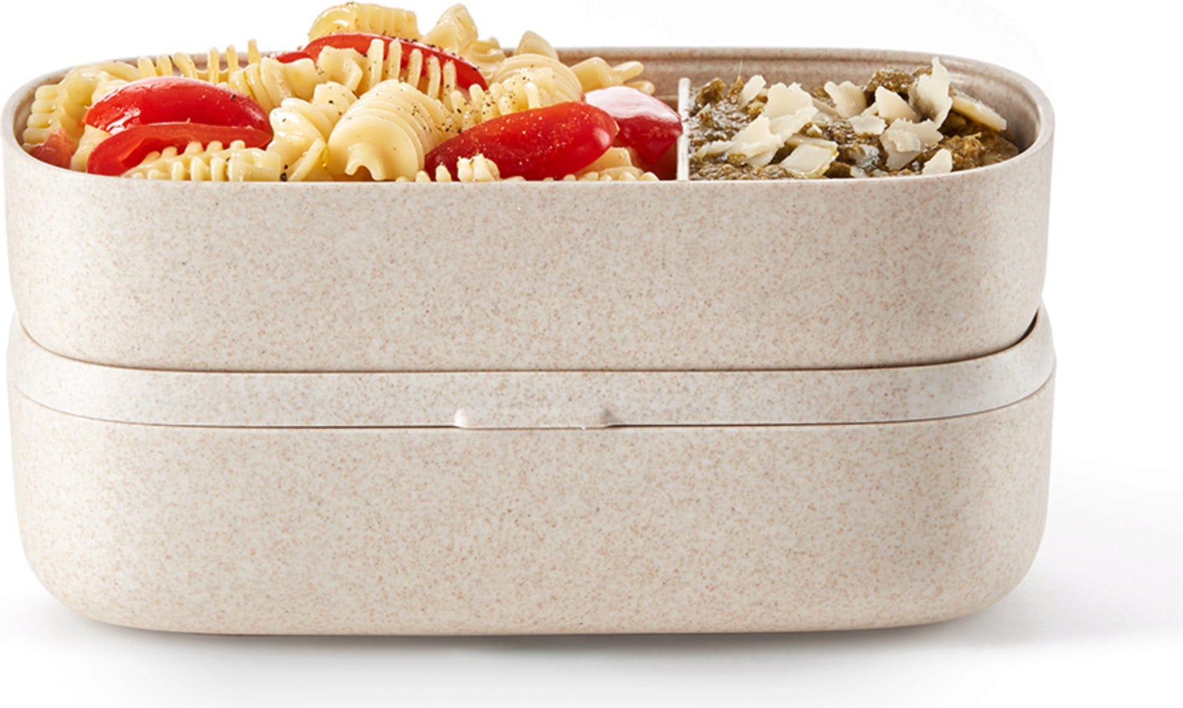 Wykonany z innowacyjnego połączenia włókien drzewnych i nadającego się do recyklingu, bezpiecznego dla żywności polipropylenu, ten lunch box to także świadomy wybór i pożegnanie z jednorazowymi opakowaniami!