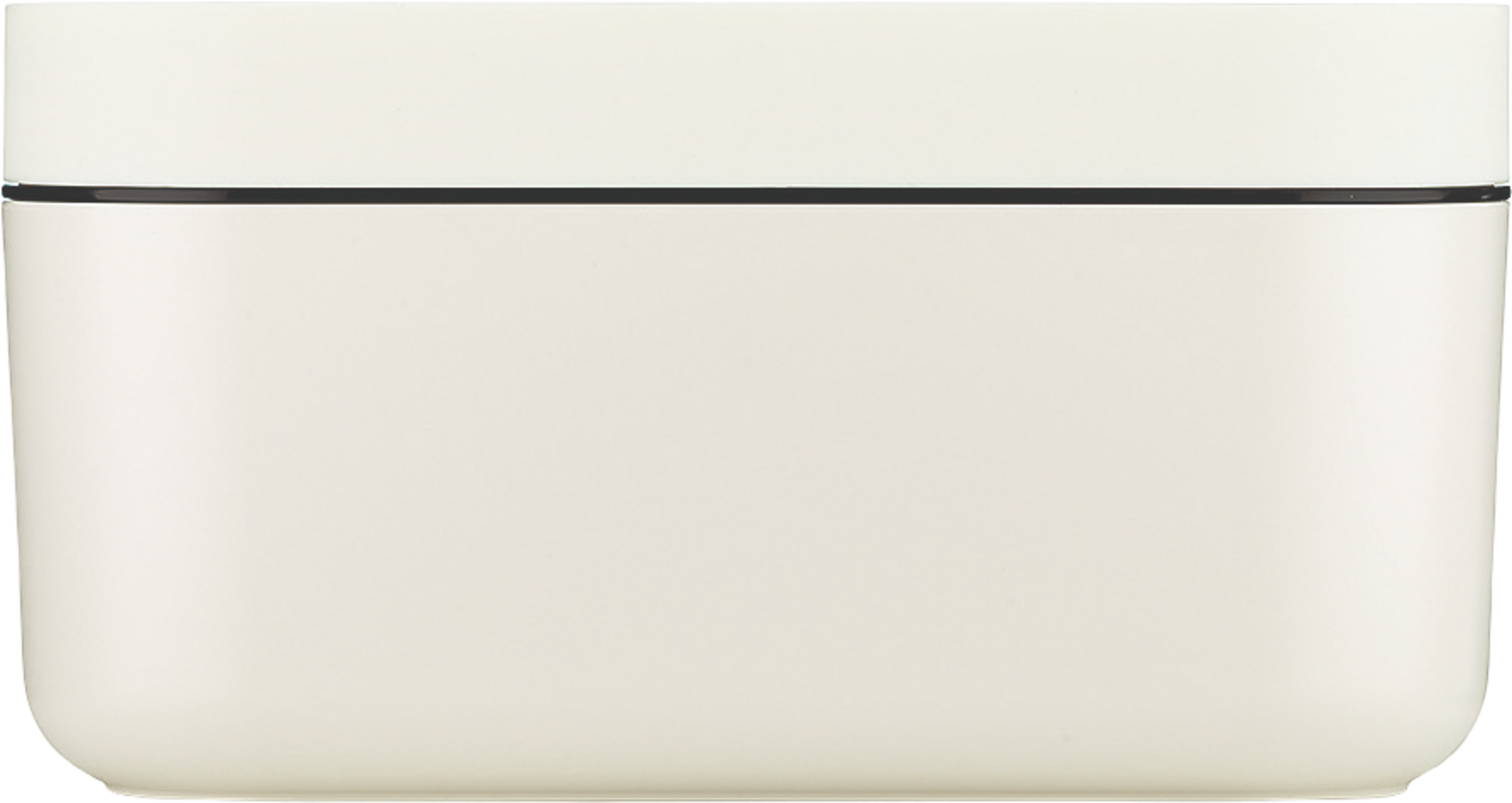 Sam pojemnik jest wykonany z wytrzymałego tworzywa ABS i spoczywa na praktycznie podniesionej podstawie. Ta konstrukcja pomaga dłużej utrzymać chłód w środku, a także skutecznie zapobiega tworzeniu się nieestetycznych skroplin. Elastyczna pokrywa wykonana z wytrzymałego silikonu nie tylko bezpiecznie zamyka pojemnik i utrzymuje świeżość kostek lodu, ale także służy jako praktyczna foremka do kostek lodu!