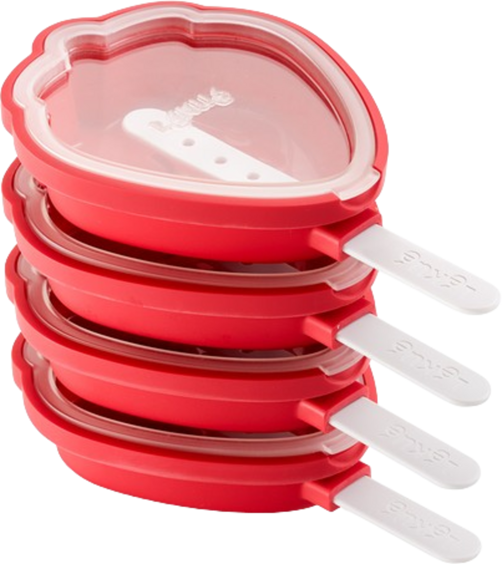 Lato, słońce, domowe lody! Dzięki foremkom do lodów w kształcie truskawki od Lékué w praktycznym zestawie 4 sztuk możesz w mgnieniu oka wyczarować pyszne lody w kształcie uroczych owoców. Przygotowanie jest szybkie i łatwe: wlej ulubione soki owocowe, jogurt lub smoothie do czterech foremek, załóż dołączone pokrywki - niezawodnie chronią one kreacje przed zapachami i smakami w zamrażarce - i włóż dołączone patyczki. Następnie wystarczy włożyć je do zamrażarki!