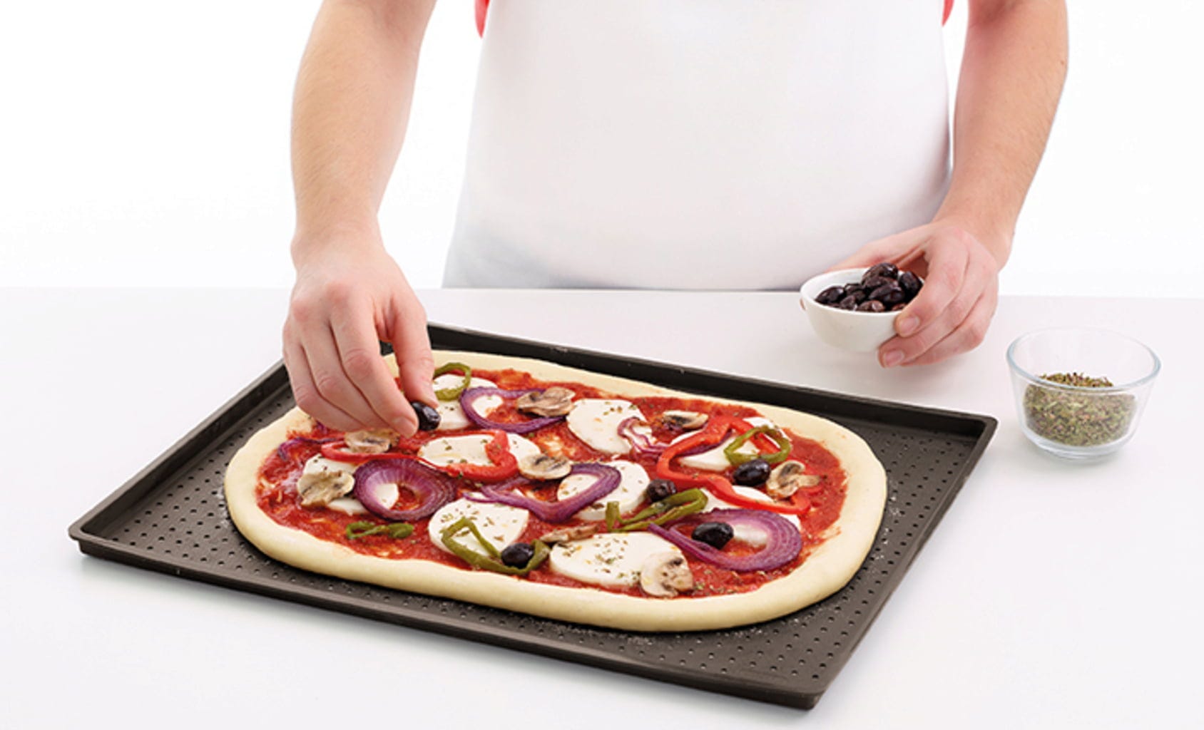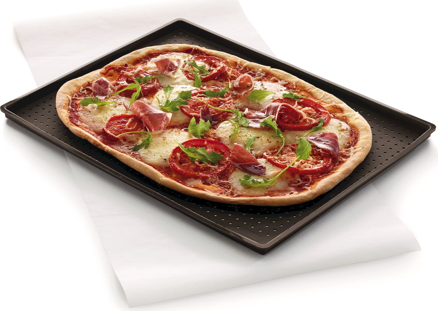 Sekret tej specjalnej formy tkwi w jej mikroperforowanej powierzchni. Te praktyczne małe otwory są kluczem do wyjątkowo chrupiącej skórki: umożliwiają optymalną cyrkulację gorącego powietrza podczas pieczenia i odprowadzanie nadmiaru wilgoci z ciasta. Rezultatem jest równomiernie upieczony spód, który jest cudownie chrupiący i nie jest rozmoczony.