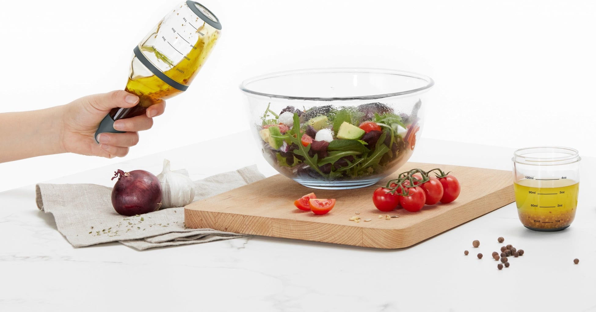 Zapomnij o nudnych gotowych dressingach i od teraz twórz własne, wyjątkowo pyszne sosy sałatkowe! Ten shaker do dressingów sprawia, że przygotowywanie, mieszanie i serwowanie ulubionych winegretów to prawdziwa przyjemność.