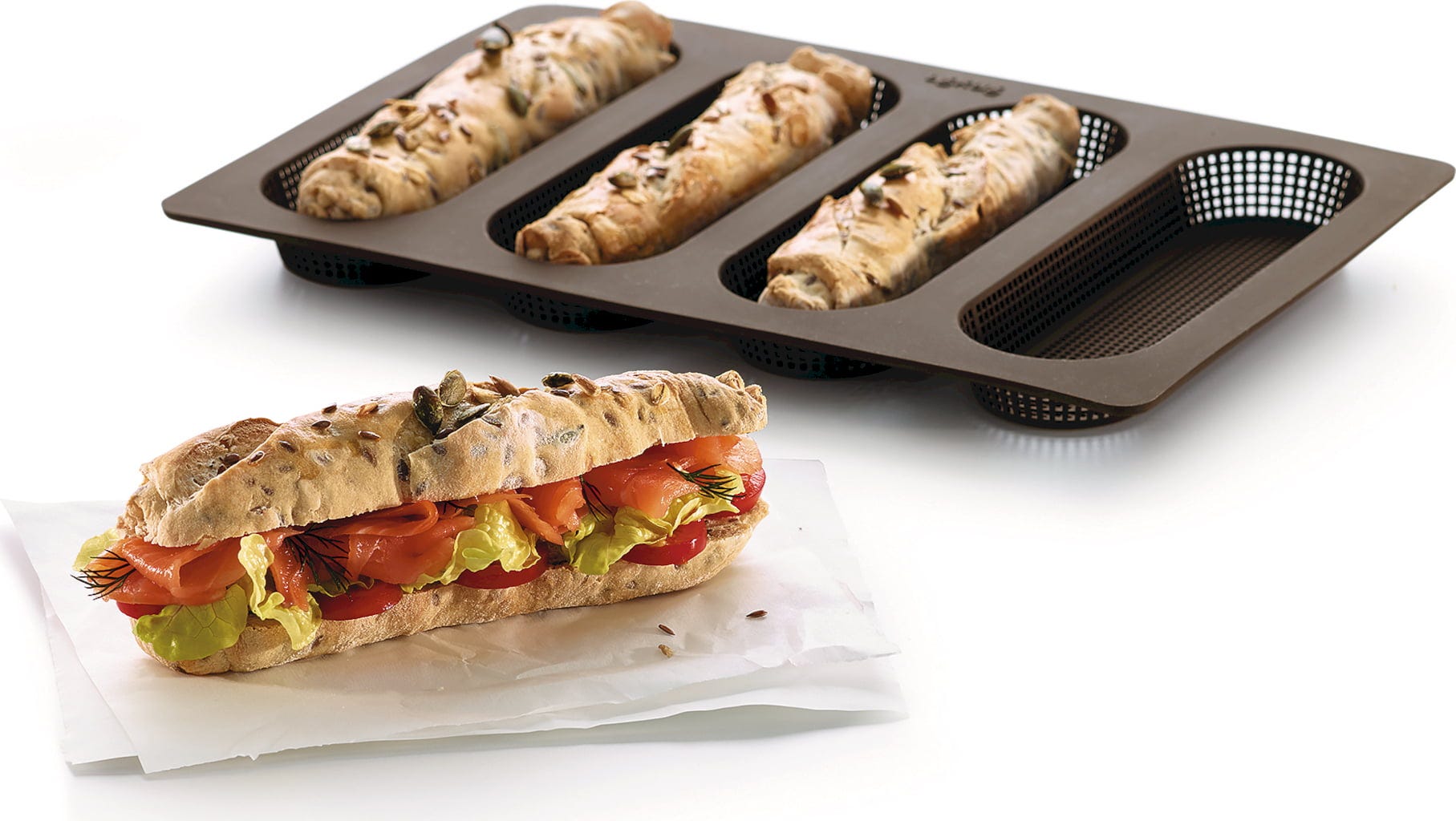 Dzięki silikonowej formie do pieczenia małych bagietek Lékué możesz w mgnieniu oka przygotować chrupiące, pysznie złocistobrązowe bagietki - idealne na domowe śniadanie, smaczne kanapki w podróży lub jako wyrafinowany dodatek do posiłków.