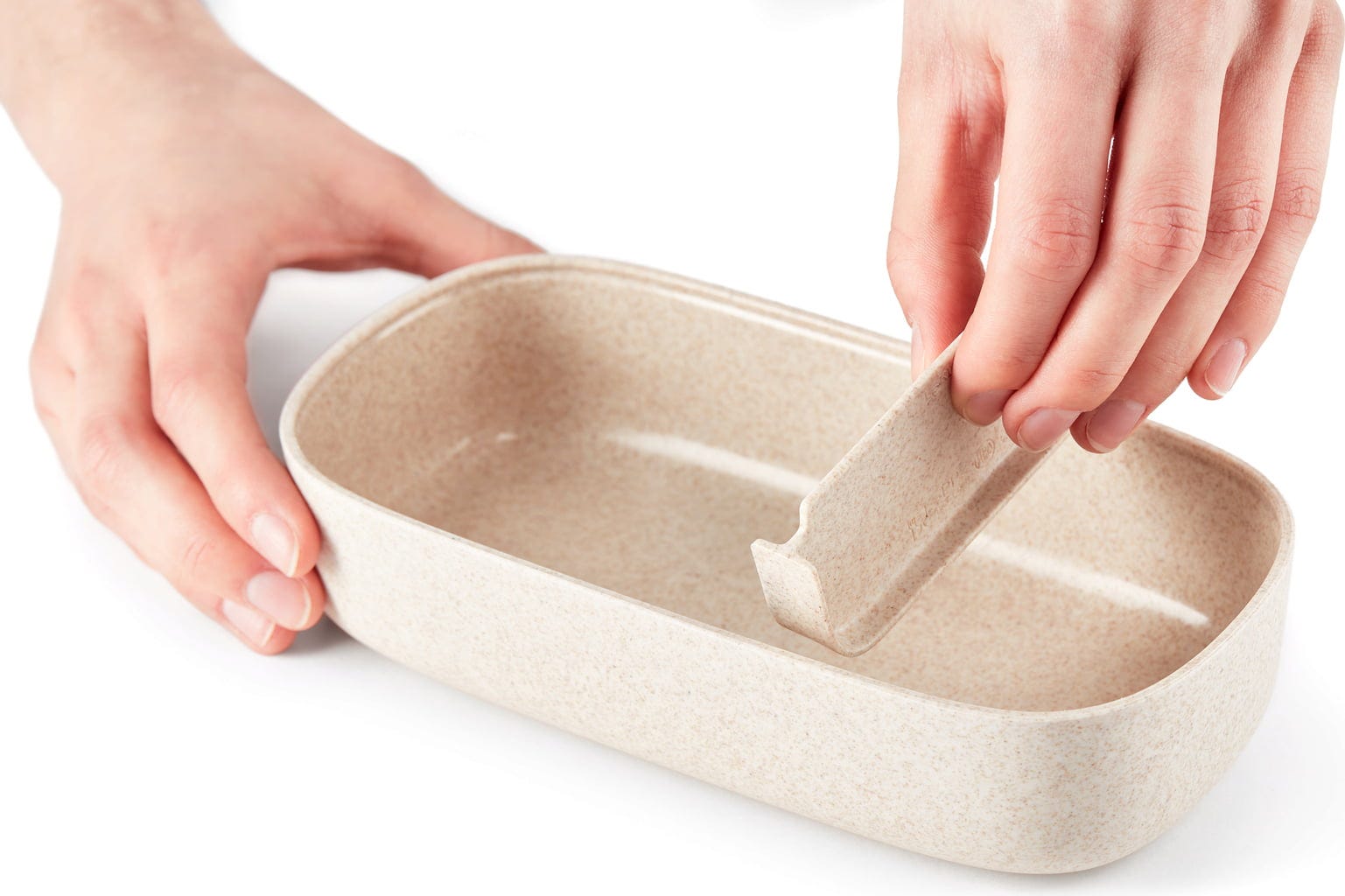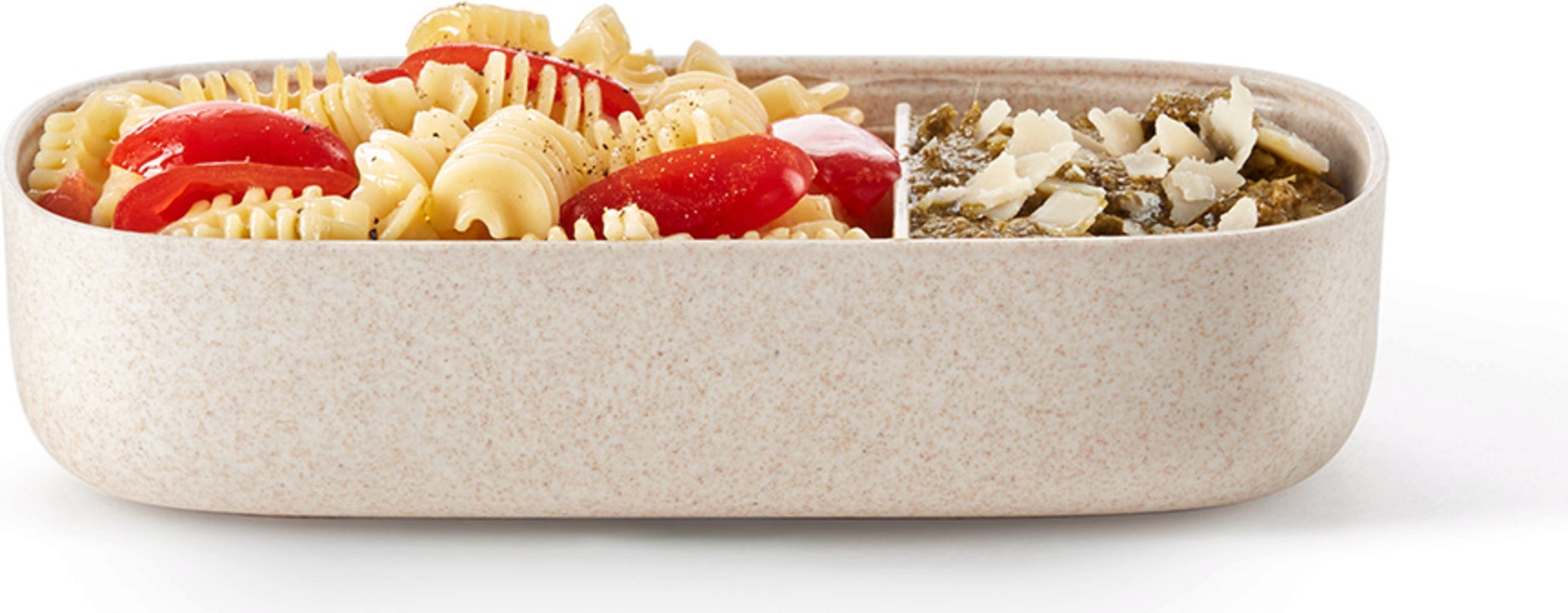 Wykonany z innowacyjnego połączenia włókien drzewnych i nadającego się do recyklingu, bezpiecznego dla żywności polipropylenu, ten lunch box to także świadomy wybór i pożegnanie z jednorazowymi opakowaniami!