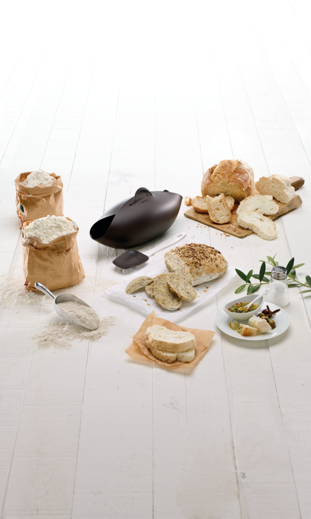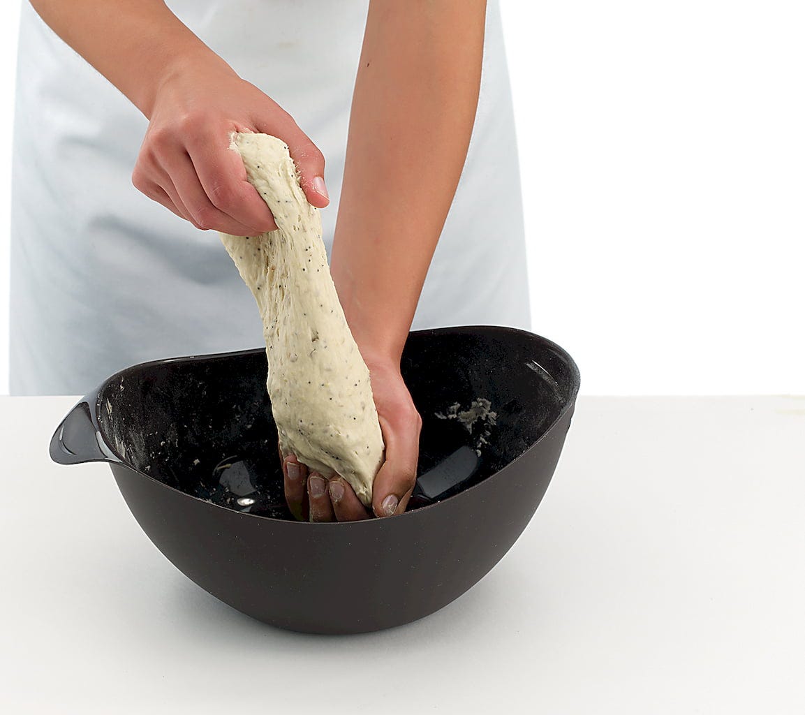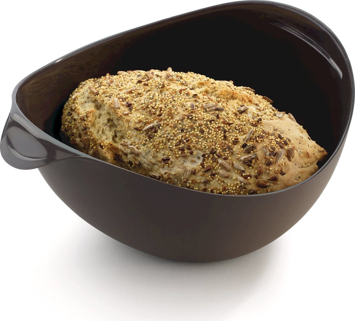 Ten zestaw do pieczenia chleba i bagietek ułatwia rozpoczęcie wspaniałego świata domowych wypieków! Centralnym elementem zestawu jest pomysłowa silikonowa forma do pieczenia chleba. Można w niej bezpośrednio odważyć składniki na chleb, zagnieść ciasto, a następnie upiec je w tym samym pojemniku. Oznacza to mniej bałaganu w kuchni i więcej czasu na delektowanie się chlebem. Specjalna konstrukcja z bocznymi otworami zapewnia cudownie chrupiącą skórkę, a częściowo zamknięta misa umożliwia cyrkulację pary, dzięki czemu chleb jest cudownie wilgotny w środku.