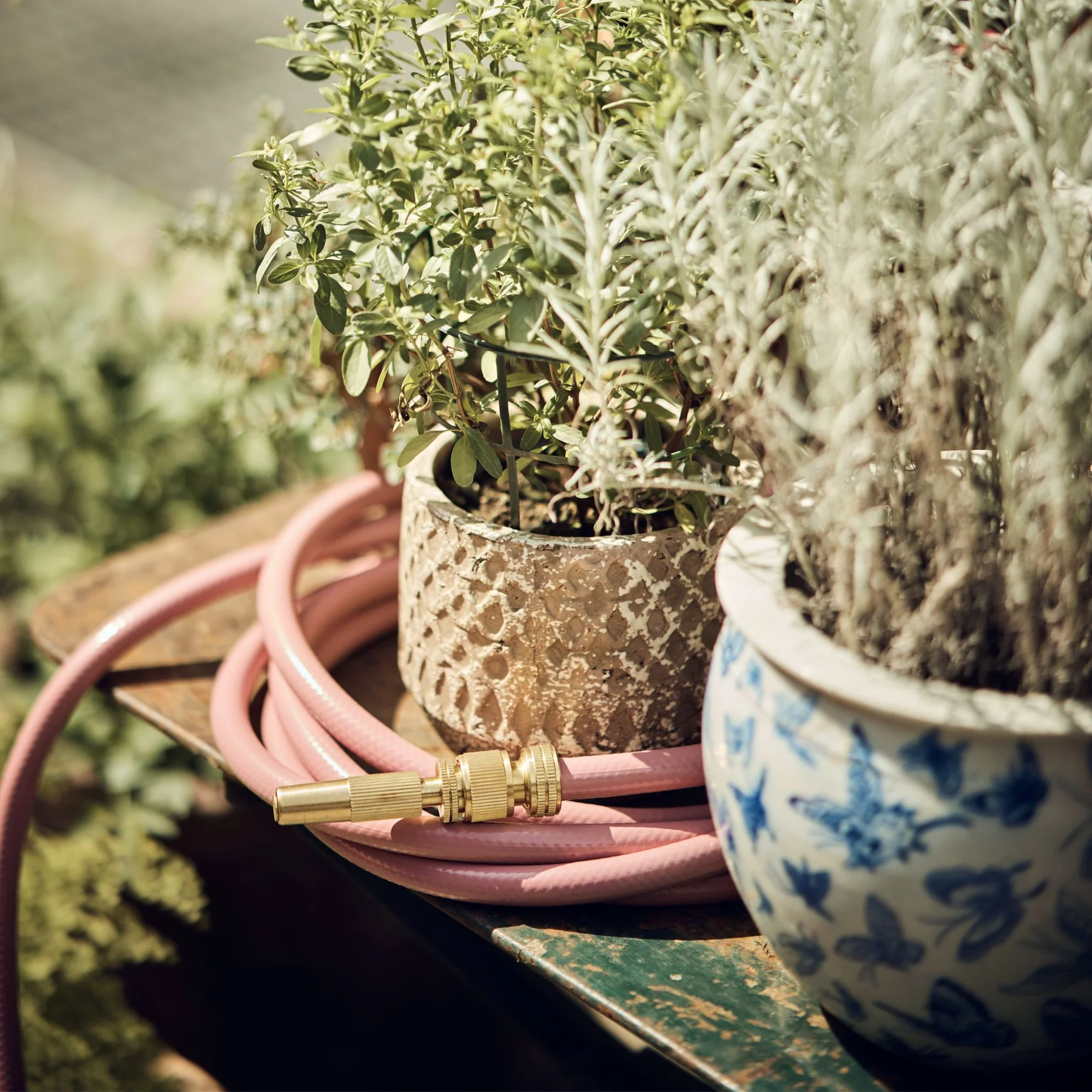 Elegancki wygląd i wyjątkowa jakość materiału i wykonania - ten spryskiwacz ogrodowy jest idealnym dodatkiem do stylowych węży ogrodowych o skandynawskim designie i uzupełnia je w wyjątkowy sposób. Ten kawałek złota nie tylko świetnie wygląda, ale jest również niezwykle wytrzymały i idealny do podlewania roślin strumieniem wody, delikatnym deszczem lub mgiełką.