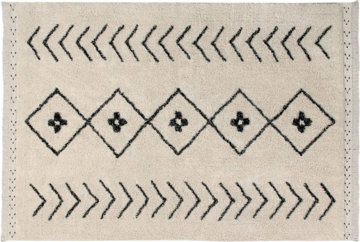 Ten piękny, starannie ręcznie wykonany dywan w stylu berberyjskim jest równie elegancki, co wszechstronny i zachwyca swoim ponadczasowym designem. Czarny wzór na beżowym tle zapewnia nieporównywalny wygląd tego wyjątkowego dywanu z czystej bawełny. Dzięki temu pasuje on do sypialni i salonu równie dobrze, jak do jadalni, a także stanowi wyjątkowy akcent na tarasach.