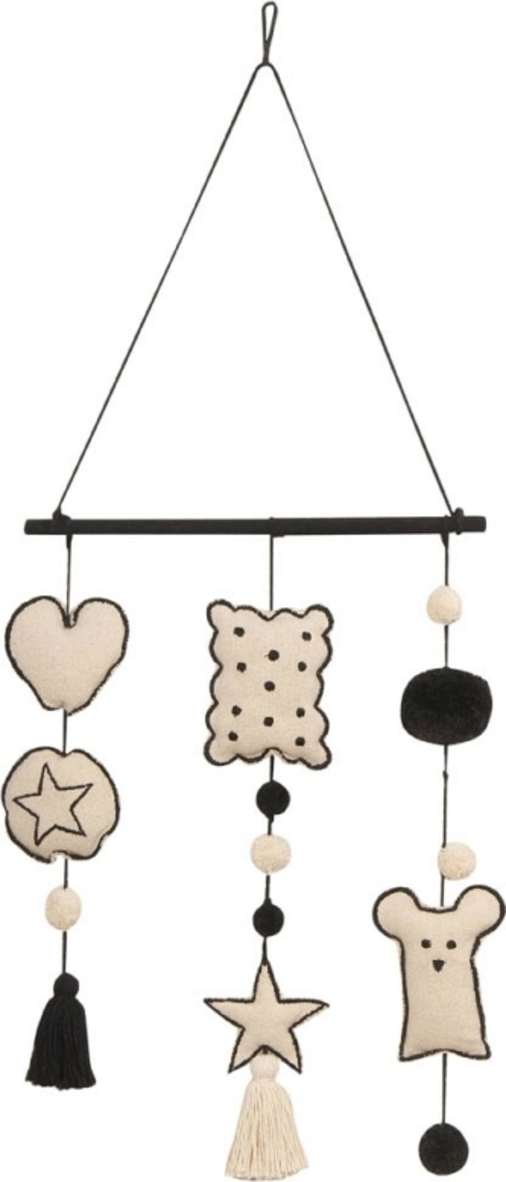 Dzięki uroczym poduszkom o różnych kształtach, ta dekoracja ścienna z czystej bawełny przyciąga wzrok w każdym pokoju dziecięcym. Myszka, serce i gwiazdka w naturalnym kolorze bawełny nadają tej pięknej dekoracji nieodparty urok, który w stylowy sposób wnosi radość do Twojego domu.