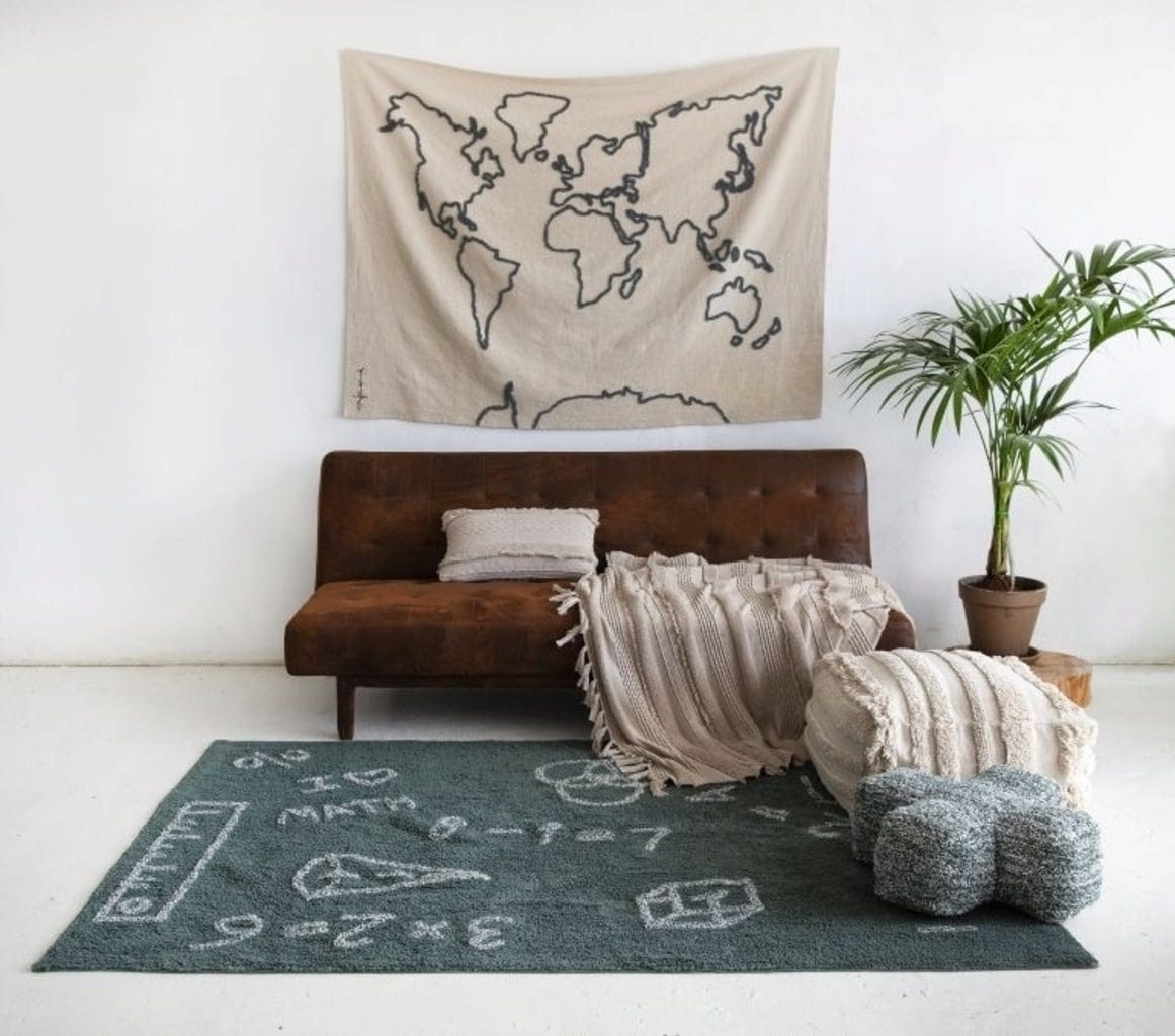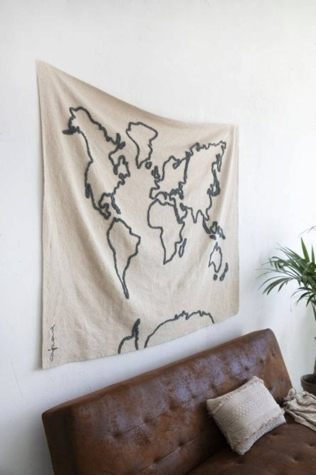 Dzięki tej wspaniałej dekoracji ściennej sprowadzisz cały świat do swojego domu. Jako piękna ozdoba, ten starannie wykonany kilim pozwoli Ci marzyć o dalekich krajach i kolejnych celach podróży. Możesz przy tym puścić wodze fantazji i na przykład zaznaczyć kolorem odwiedzone już miejsca lub spersonalizować dekorację – Twoja kreatywność nie zna granic!