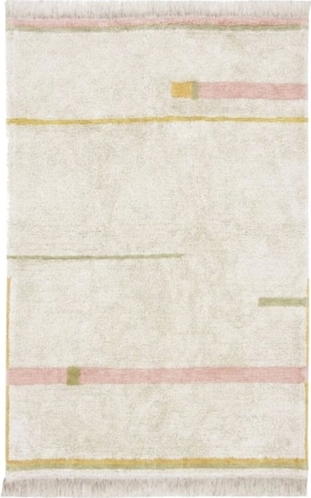 Wzór tego dywanu został zainspirowany różnorodnością szerokich i wąskich uliczek i bawi się różnymi wysokościami runa: miękka, dłuższa tkanina pluszowa w delikatnych, naturalnych kolorach przeplata się z krótszym runem w stonowanych barwach. Dywan wykończony jest frędzlami, które optymalnie dopełniają jego spokojny design. Idealnie nadaje się do salonów i sypialni lub jako delikatny akcent kolorystyczny w pokojach dziecięcych i młodzieżowych, gdzie tworzy przyjemną atmosferę sprzyjającą dobremu samopoczuciu.