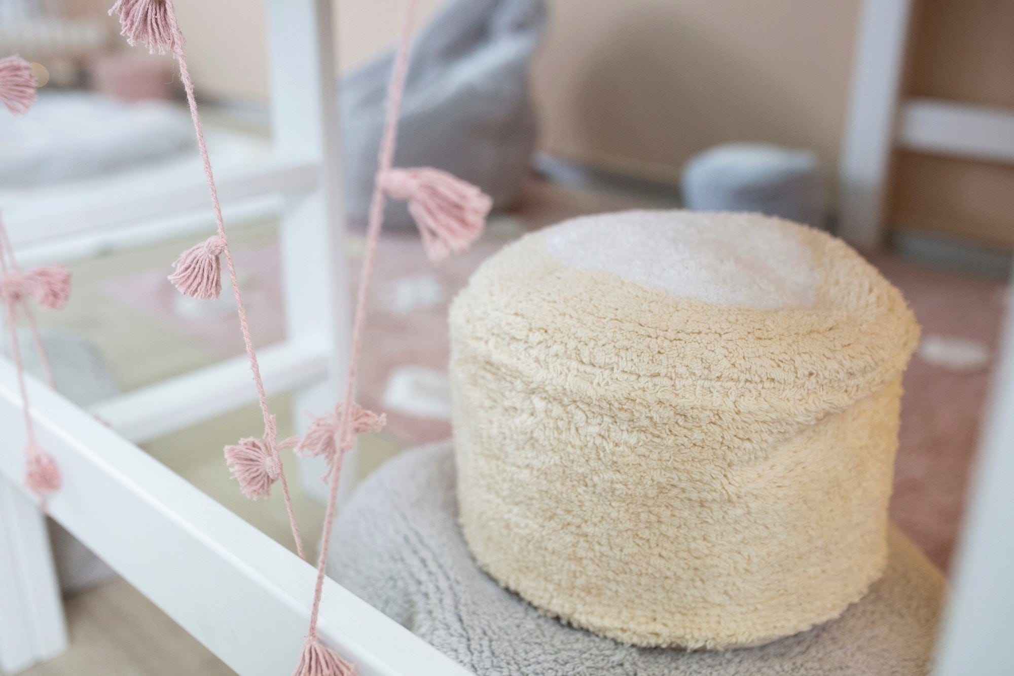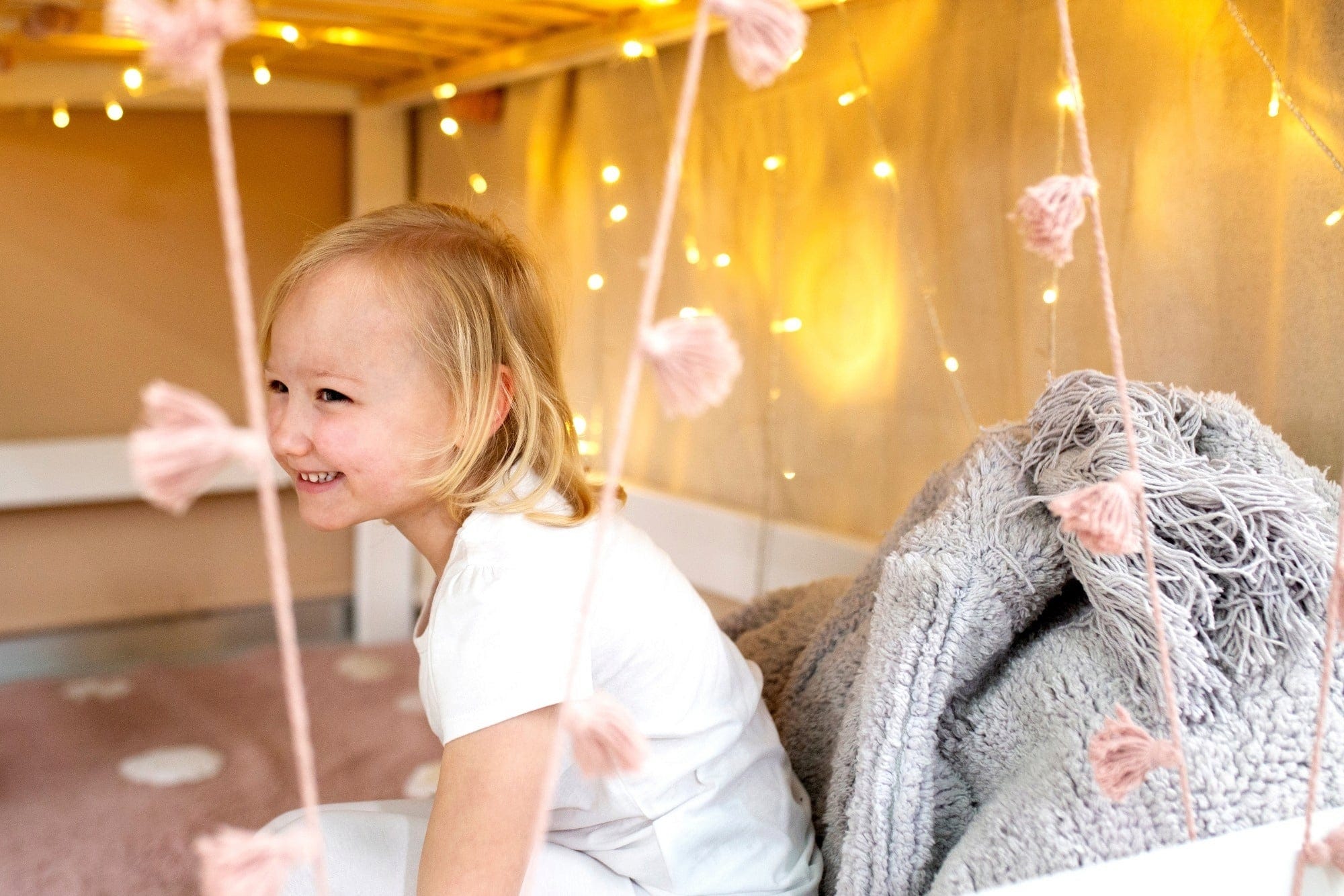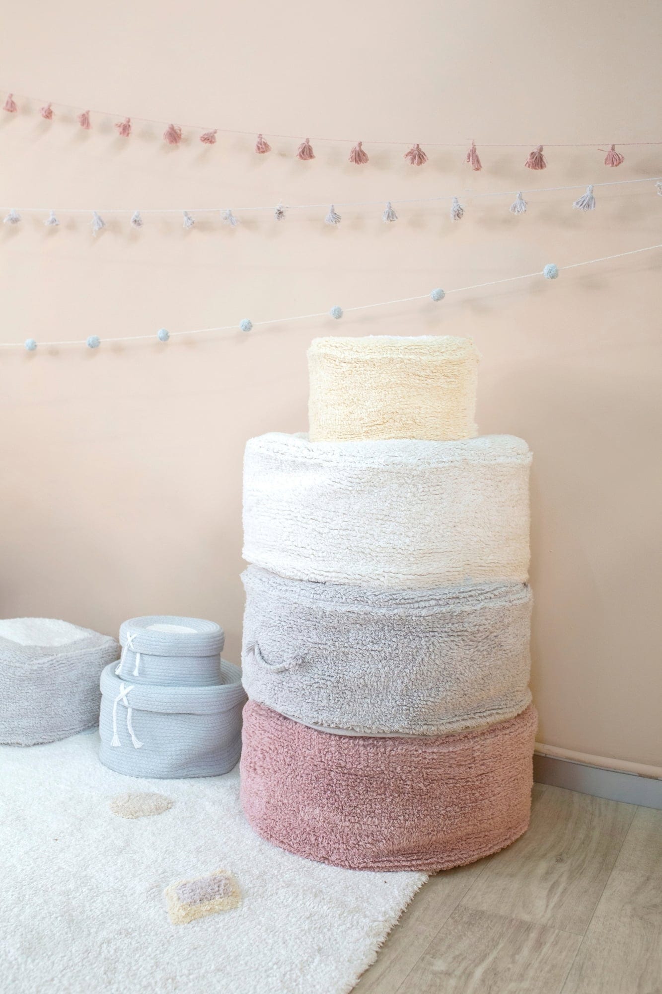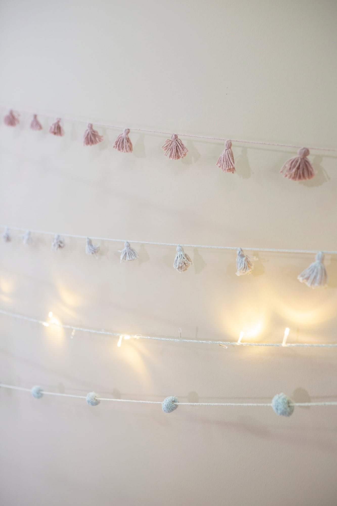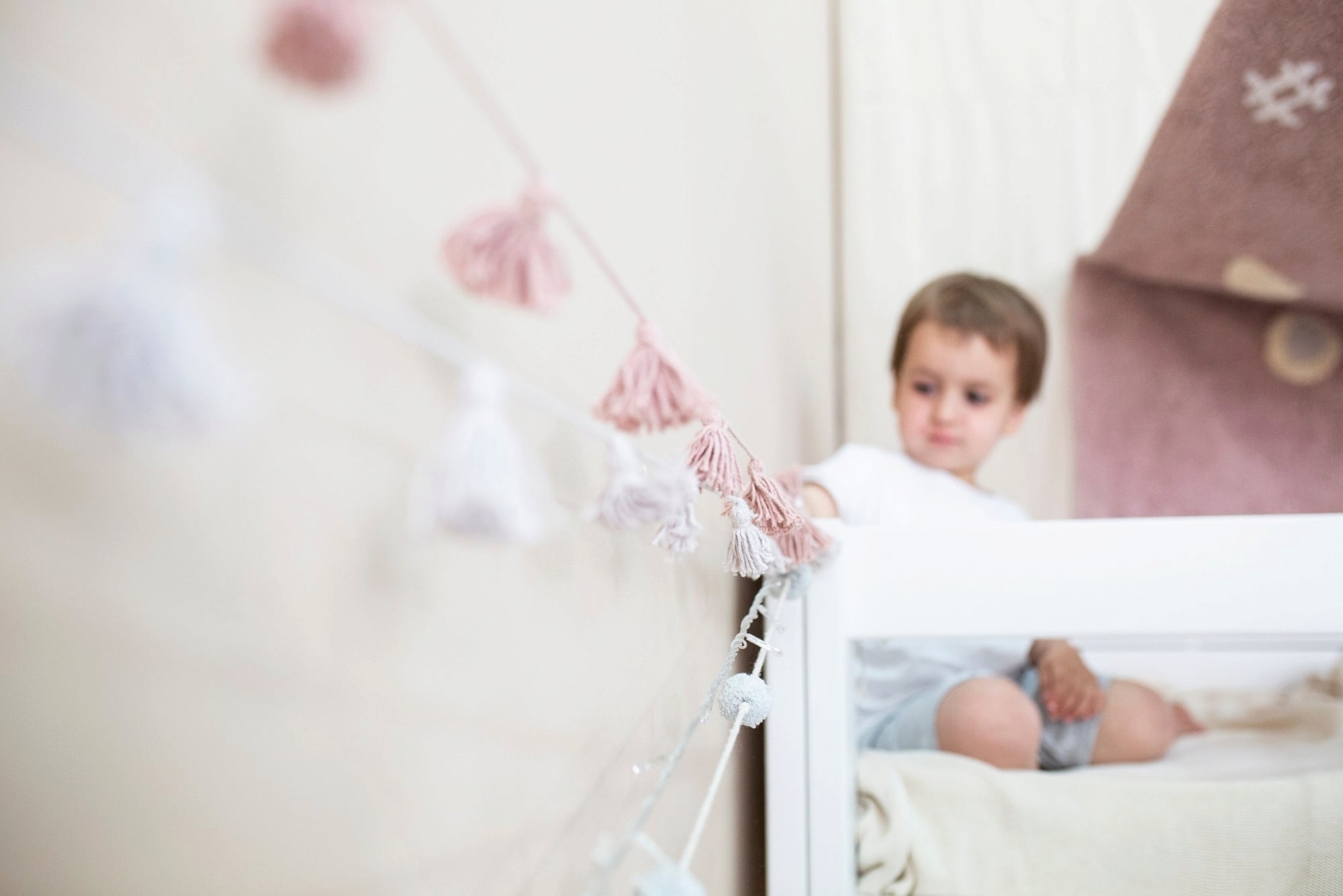 Ta starannie, ręcznie wykonana girlanda to urocza dekoracja do pokoju Twojego malucha. Dzięki słodkim pomponom wygląda po prostu czarująco i w mgnieniu oka wprowadza do pokoju dziecięcego nieodparty, zabawny styl.