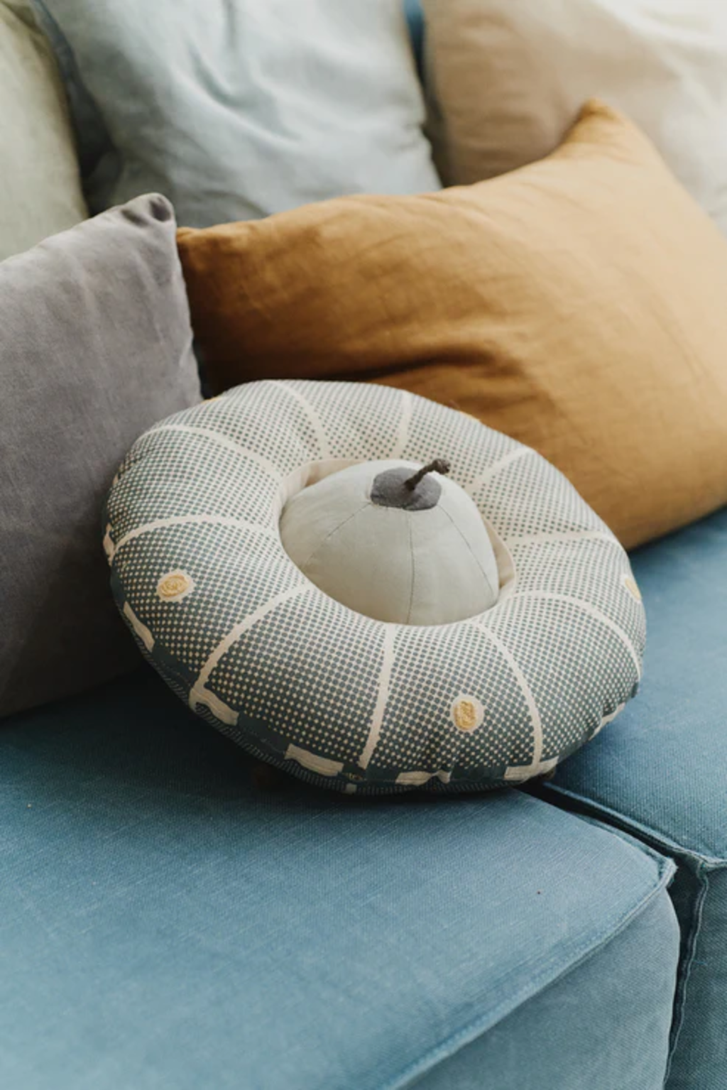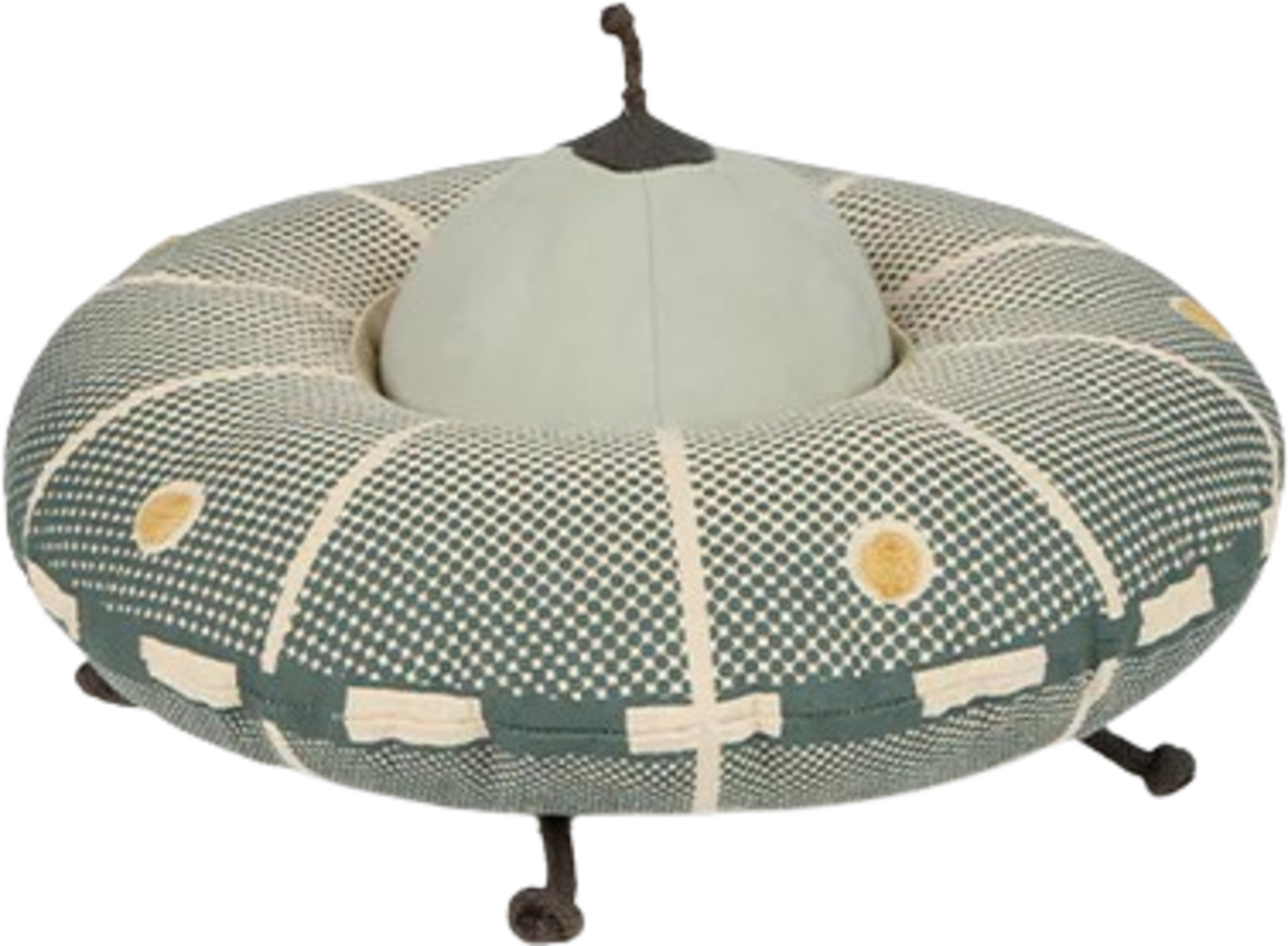 Odkrywaj odległe planety i wyimaginowane światy z poduszką Interactive UFO! Ten kreatywny projekt poduszki składa się z dwóch części: kształtu pączka z małymi sznurkami, które służą jako nogi lądownika statku kosmicznego, oraz kuli ze sznurkiem pełniącym rolę anteny.