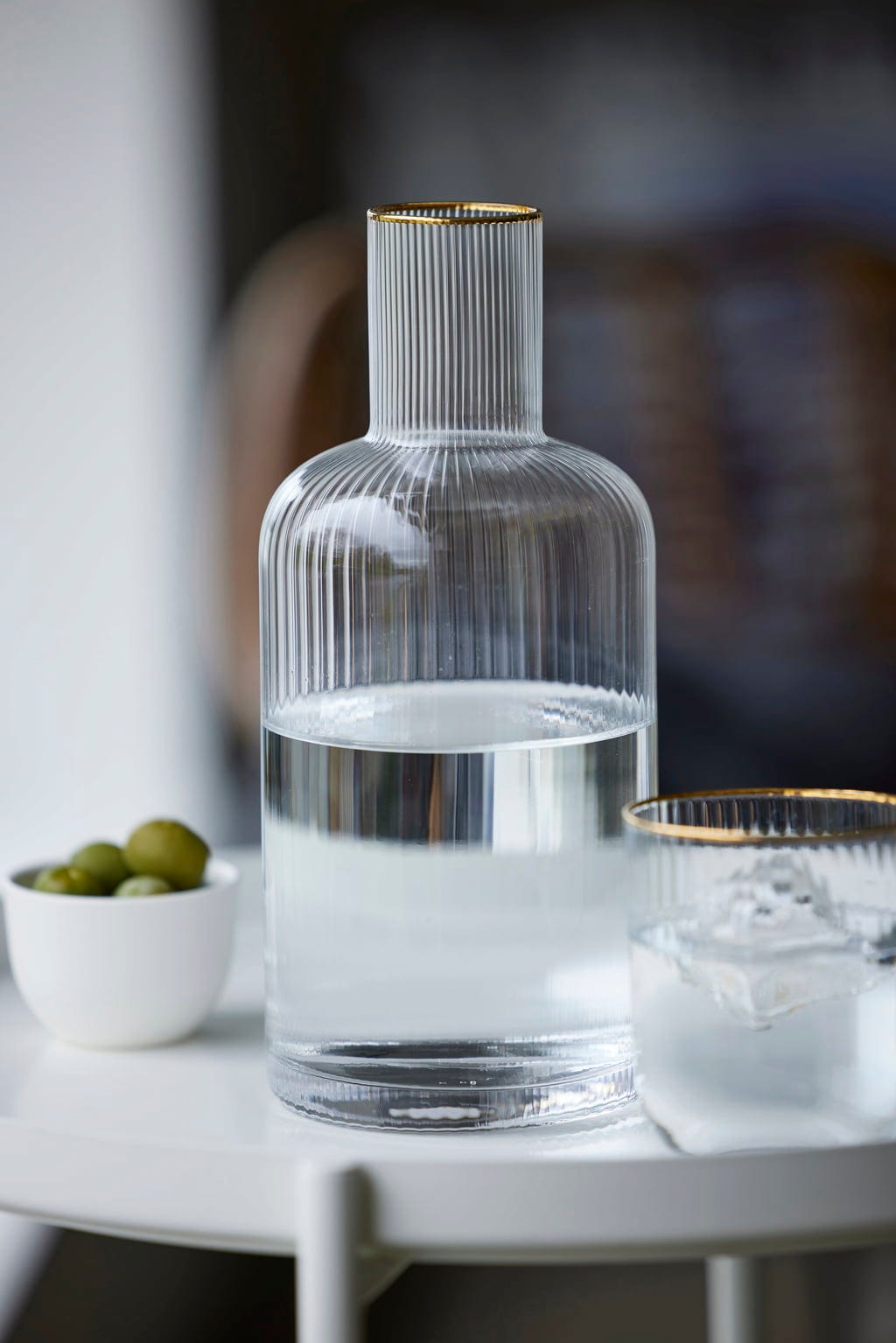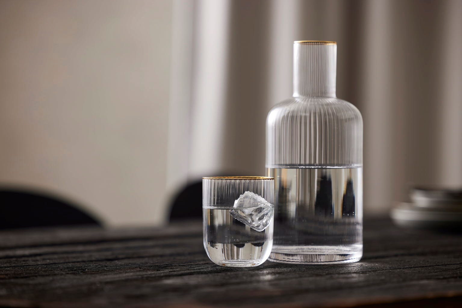 Masz ochotę na trochę więcej wody? Dzięki tej pięknej karafce od Lyngby Glas możesz zapewnić swoim gościom wodę i inne napoje w dobrym stylu! Jej miękkie, zaokrąglone kształty, karbowany design i subtelna złota krawędź sprawiają, że jest to elegancki dodatek do pięknie nakrytego stołu.