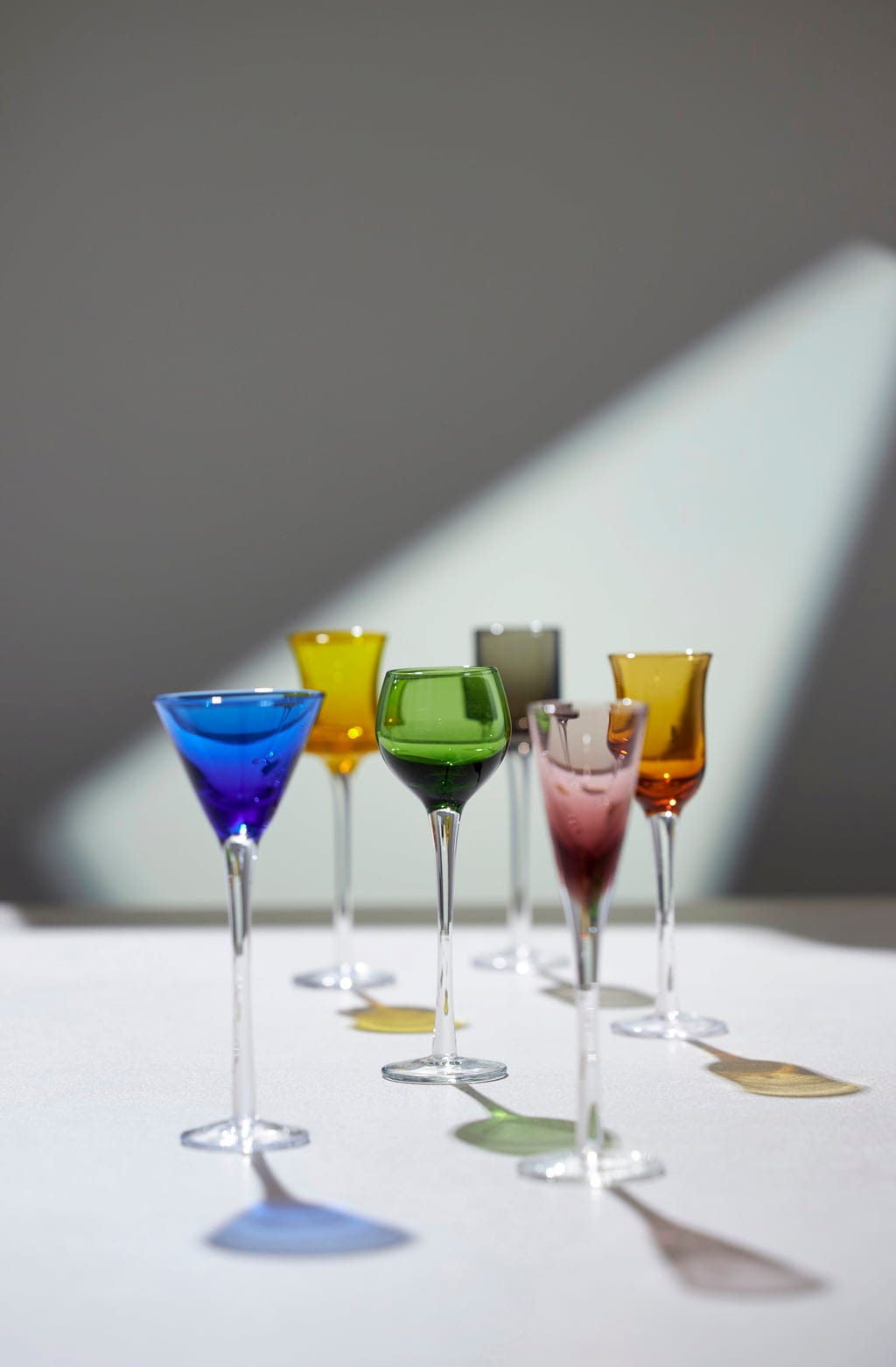 Dostępne w kolorach fioletowym, niebieskim, dymnym, bursztynowym, zielonym i żółtym, nie tylko tworzą kolorową atmosferę przy stole, ale także ułatwiają gościom szybkie znalezienie kieliszka.