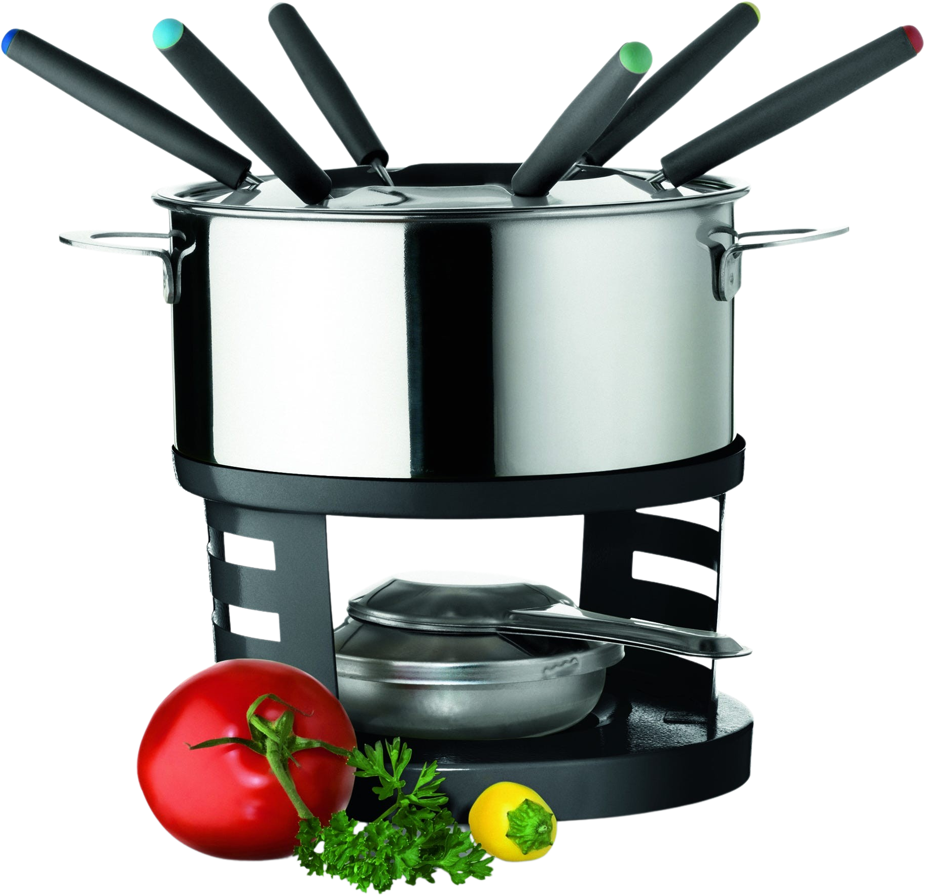 Wyposażony w garnek do fondue, podgrzewacz, dopasowaną osłonę przed pryskaniem, bezpieczny palnik na pastę oraz sześć widelczyków do fondue, stanowi idealną bazę do klasycznego fondue mięsnego. Dzięki stabilnemu podgrzewaczowi i regulowanemu palnikowi zagwarantowane jest bezpieczne użytkowanie, a po zakończeniu uczty wszystkie elementy można bez trudu umyć w zmywarce.