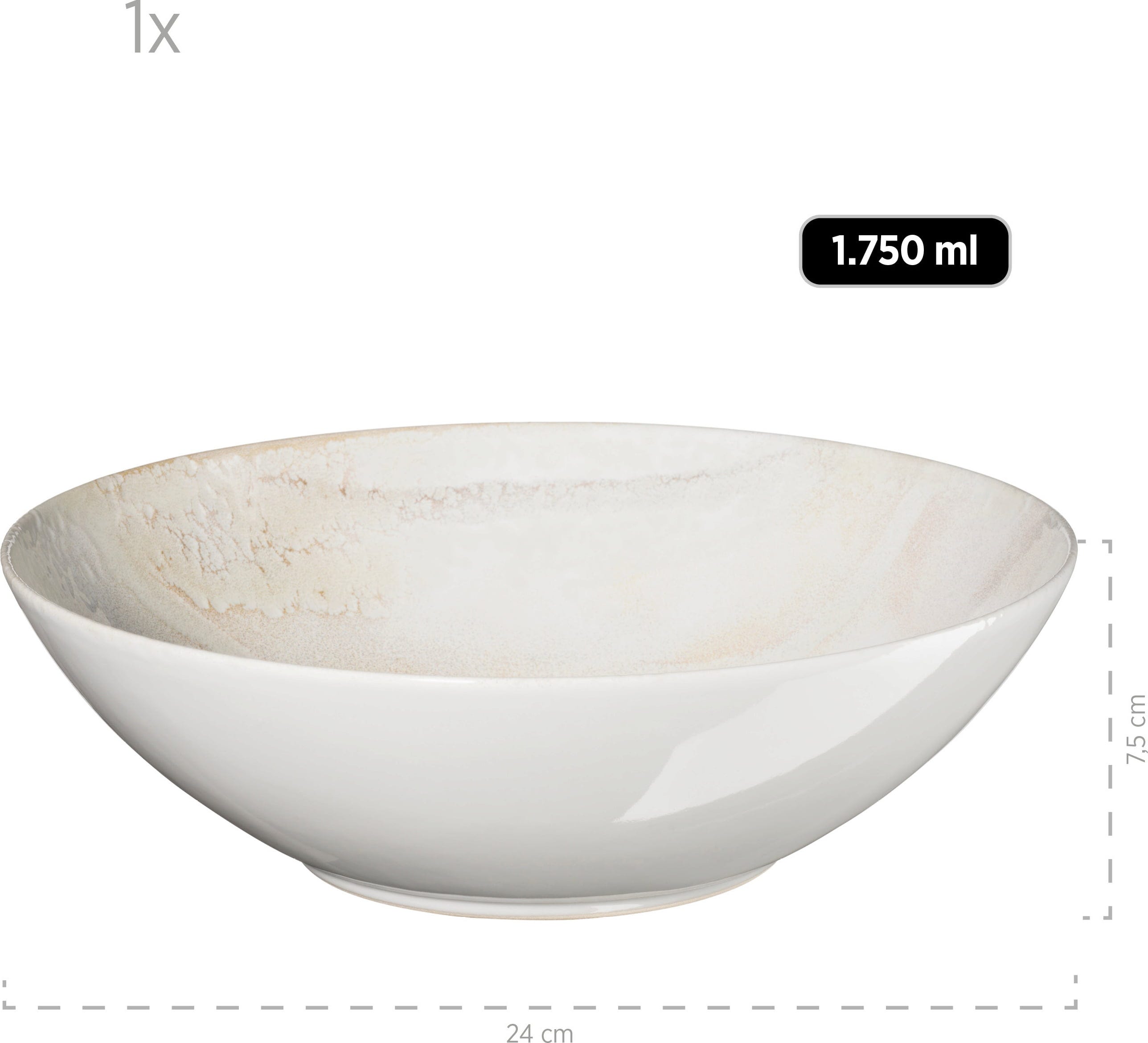 Wprowadź czysty śródziemnomorski styl życia bezpośrednio na swój stół dzięki temu 7-częściowemu zestawowi misek do sałatek z serii Ossia marki Mäser. Zestaw wykonany z wysokiej jakości, wytrzymałej kamionki urzeka nieregularnie mieniącym się szkliwem, które sprawia, że każda miska jest unikatem o uroczym wyglądzie vintage.