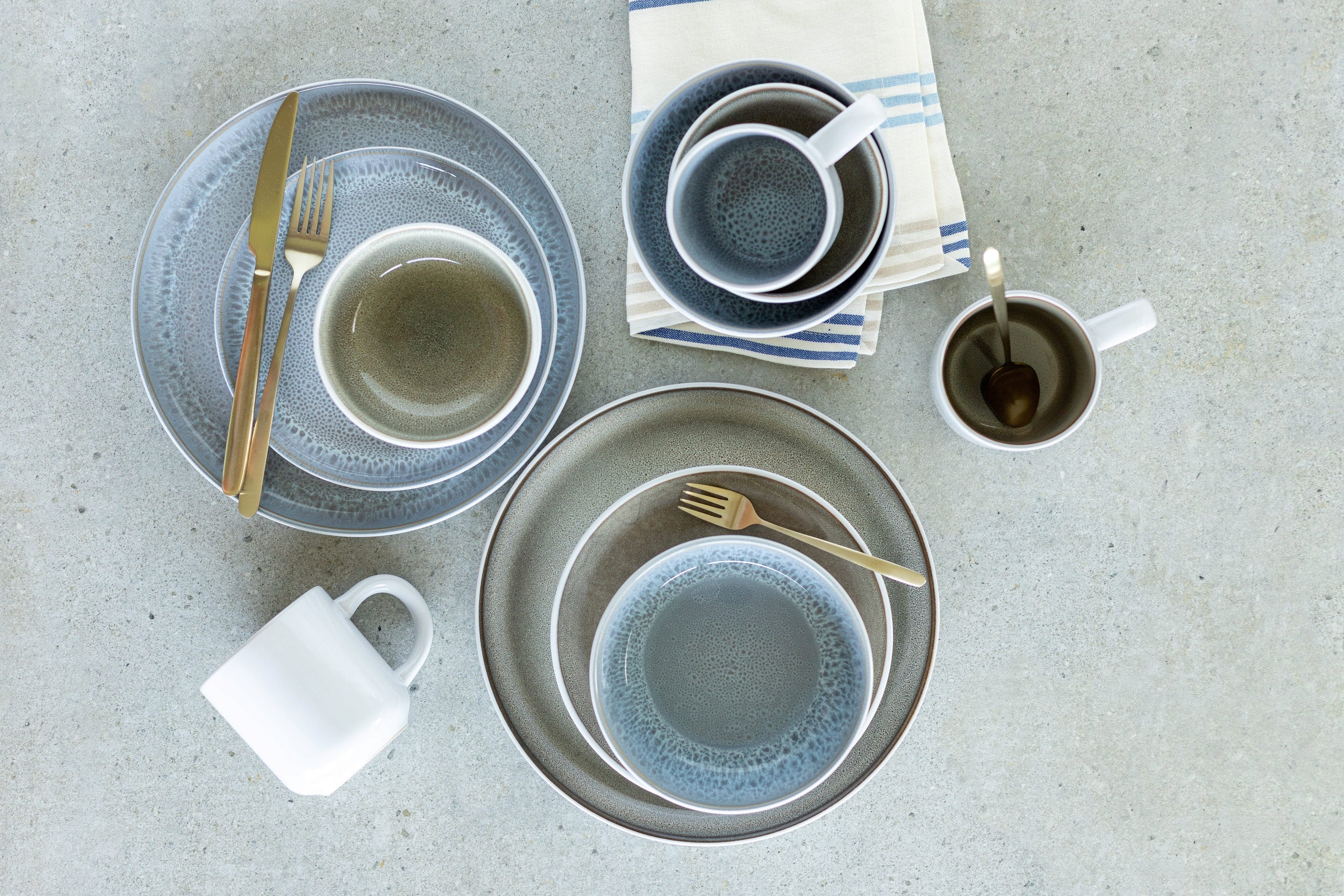 Serwis wykonany z wytrzymałej, wysokiej jakości kamionki jest idealnie wyposażony na cały dzień, oferując cztery płaskie talerze obiadowe, cztery talerze deserowe, cztery uniwersalne miski oraz cztery kubki do kawy. Dzięki właściwościom pozwalającym na mycie w zmywarce i używanie w kuchence mikrofalowej, seria Lunaria bez trudu łączy rzemieślniczy wygląd z nieskomplikowaną funkcjonalnością, pozwalając Ci cieszyć się stylowym designem bez dużego nakładu pracy przy pielęgnacji!