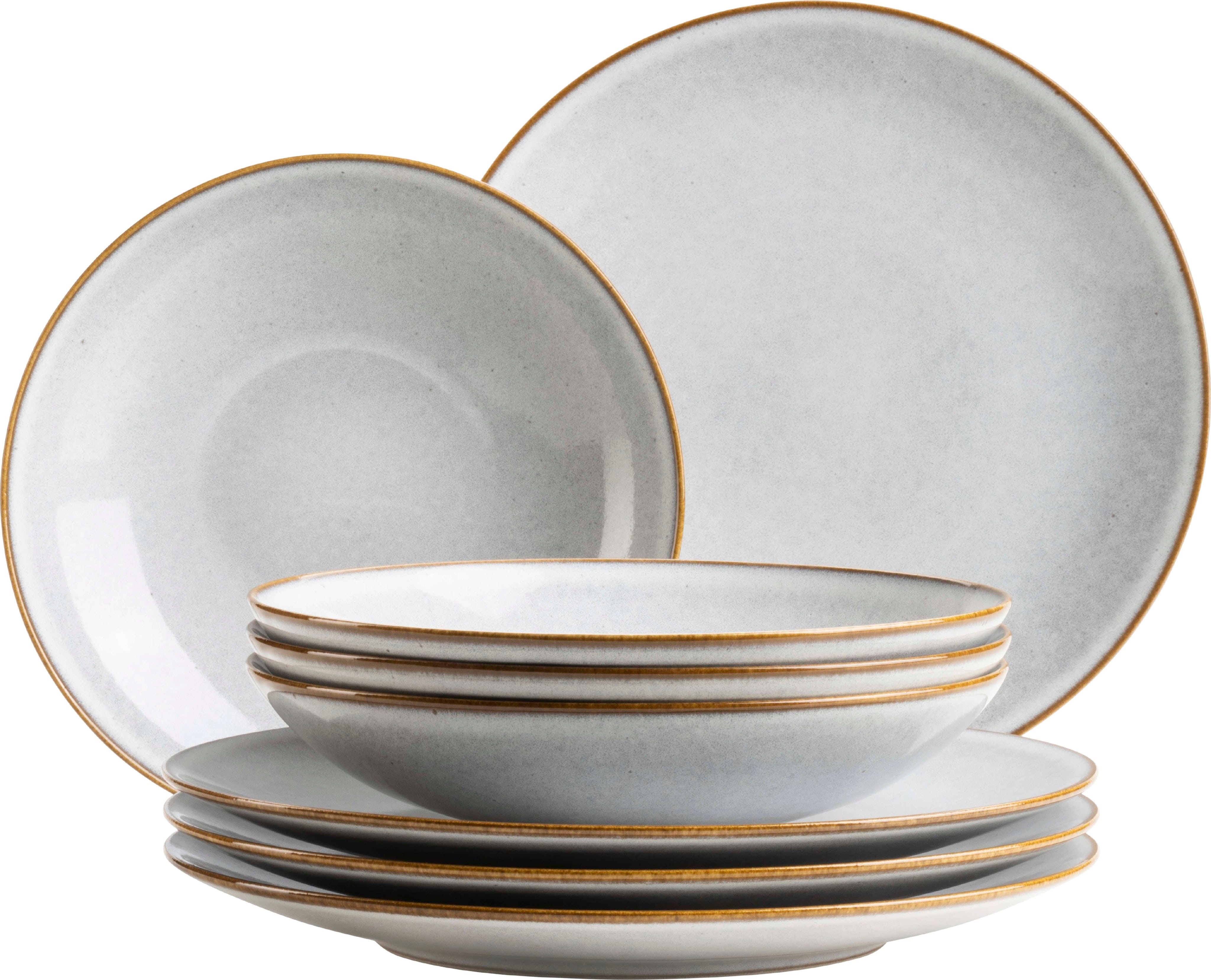 Wprowadź do swojego domu relaksujący styl Scandi dzięki temu ośmioczęściowemu serwisowi obiadowemu i ciesz się wyjątkowym połączeniem naturalnego ciepła z nowoczesną elegancją. Wykonany z wysokiej jakości kamionki, każdy element zachwyca specjalnym szkliwieniem reaktywnym, które tworzy indywidualne przejścia kolorystyczne i wzbogaca Twój nakryty stół o prawdziwe unikaty.