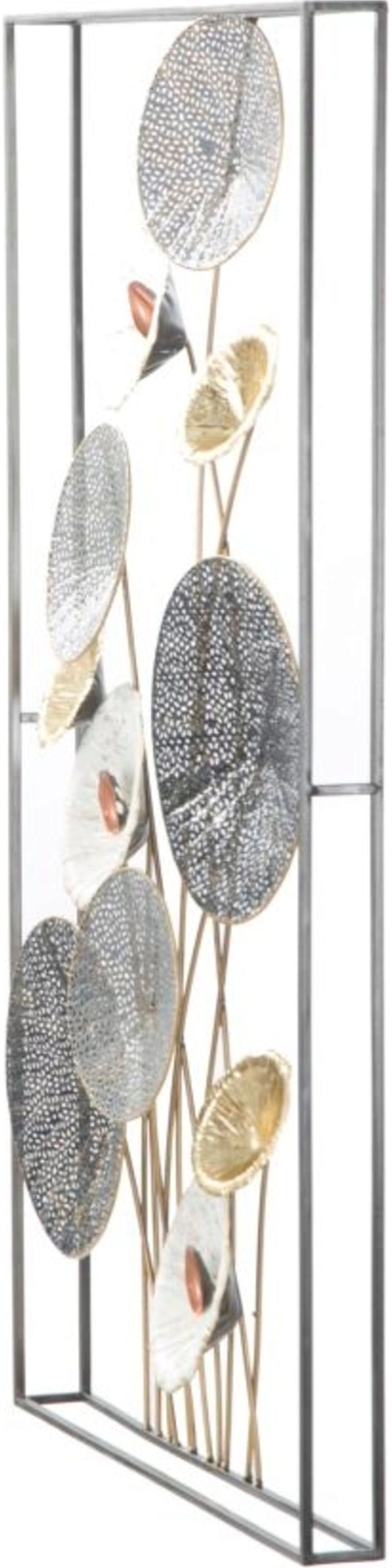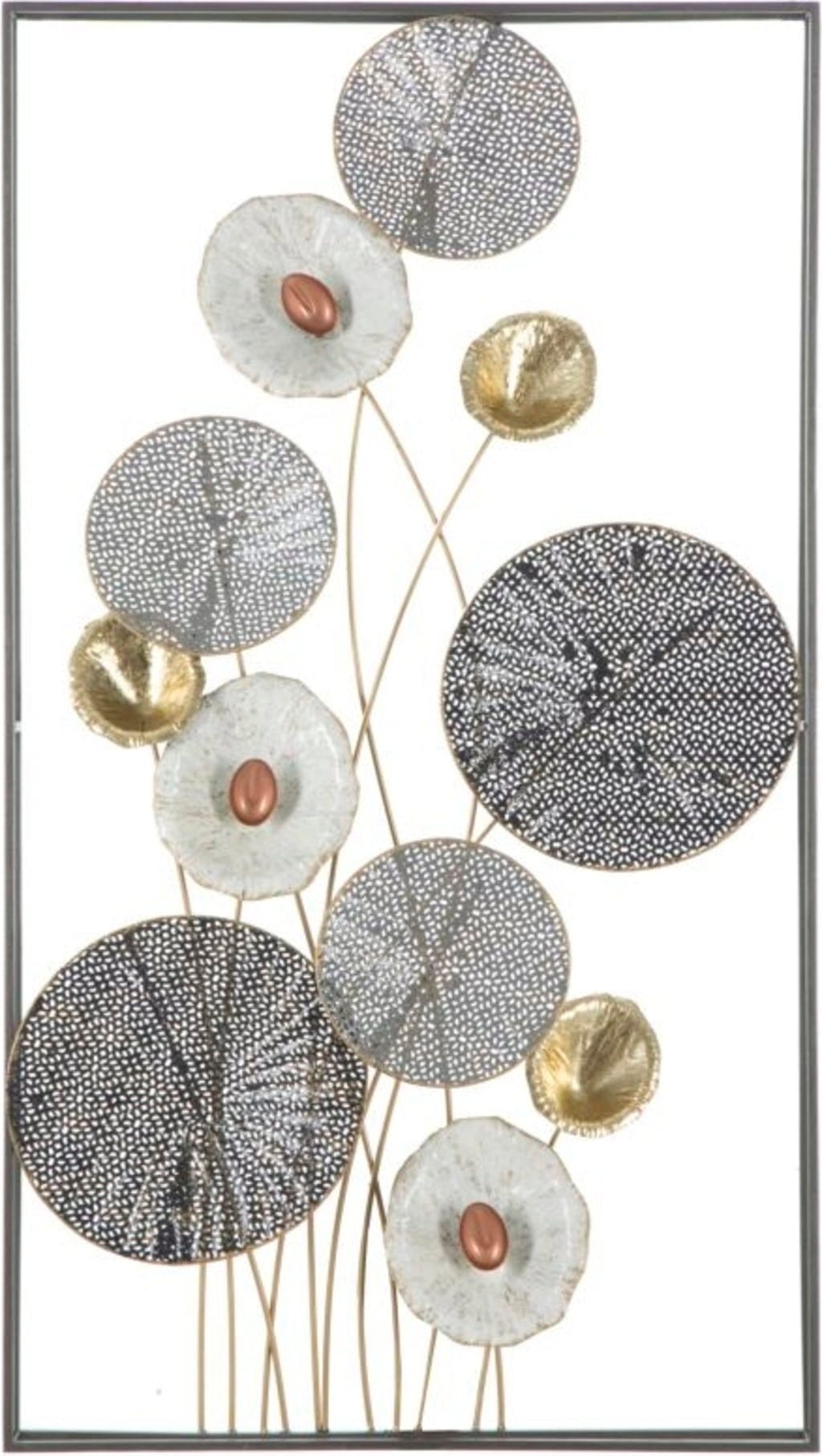 Nadaj swojemu domowi ekskluzywny charakter dzięki dekoracji ściennej Grid marki Mauro Ferretti. Ten abstrakcyjny metalowy panel 3D to doskonały przykład nowoczesnego trendu w dekoracji ścian, który natychmiast wprowadza blask do każdego pomieszczenia. Design zachwyca kompozycją okrągłych elementów o różnych rozmiarach, które przekonują filigranowymi strukturami kratowymi oraz szlachetną paletą barw w odcieniach srebra, złota i miedzi.