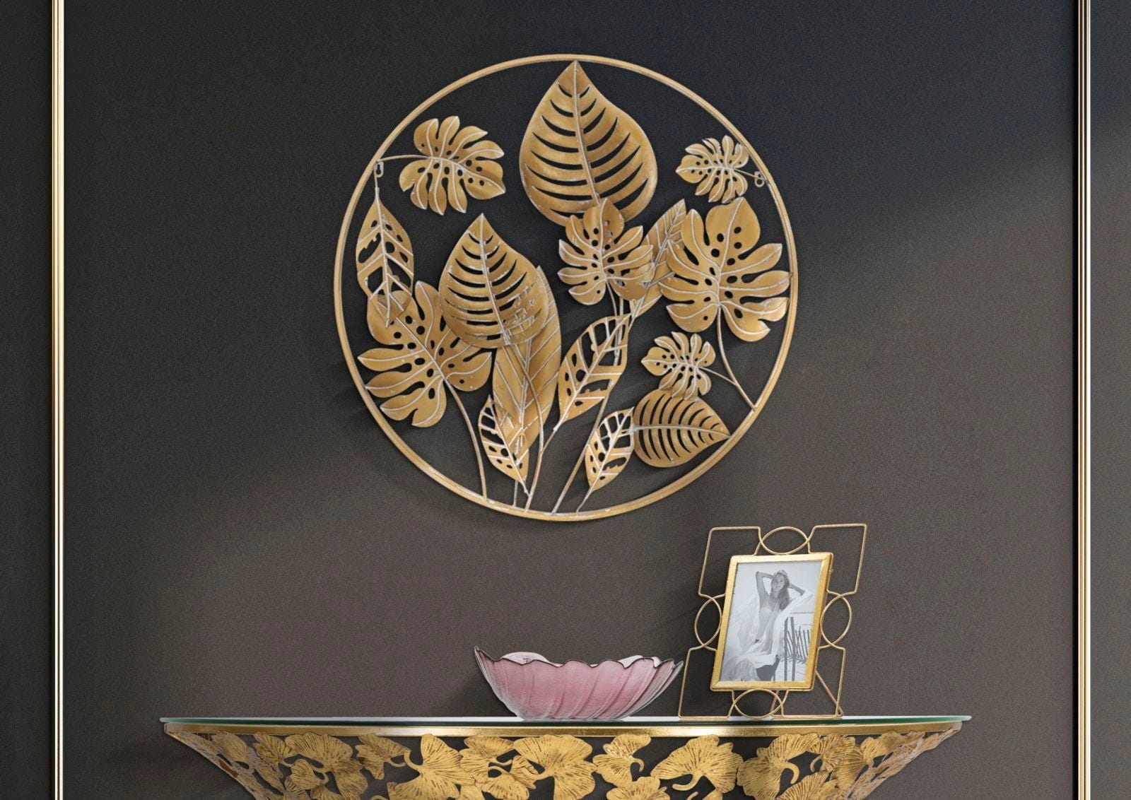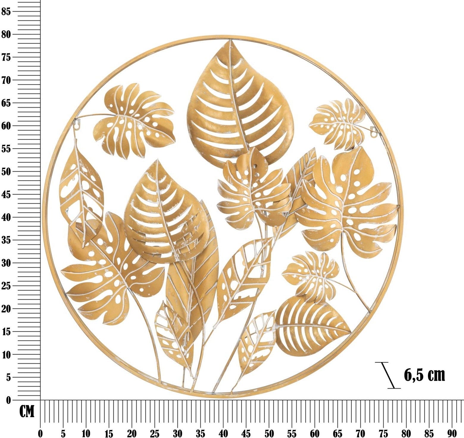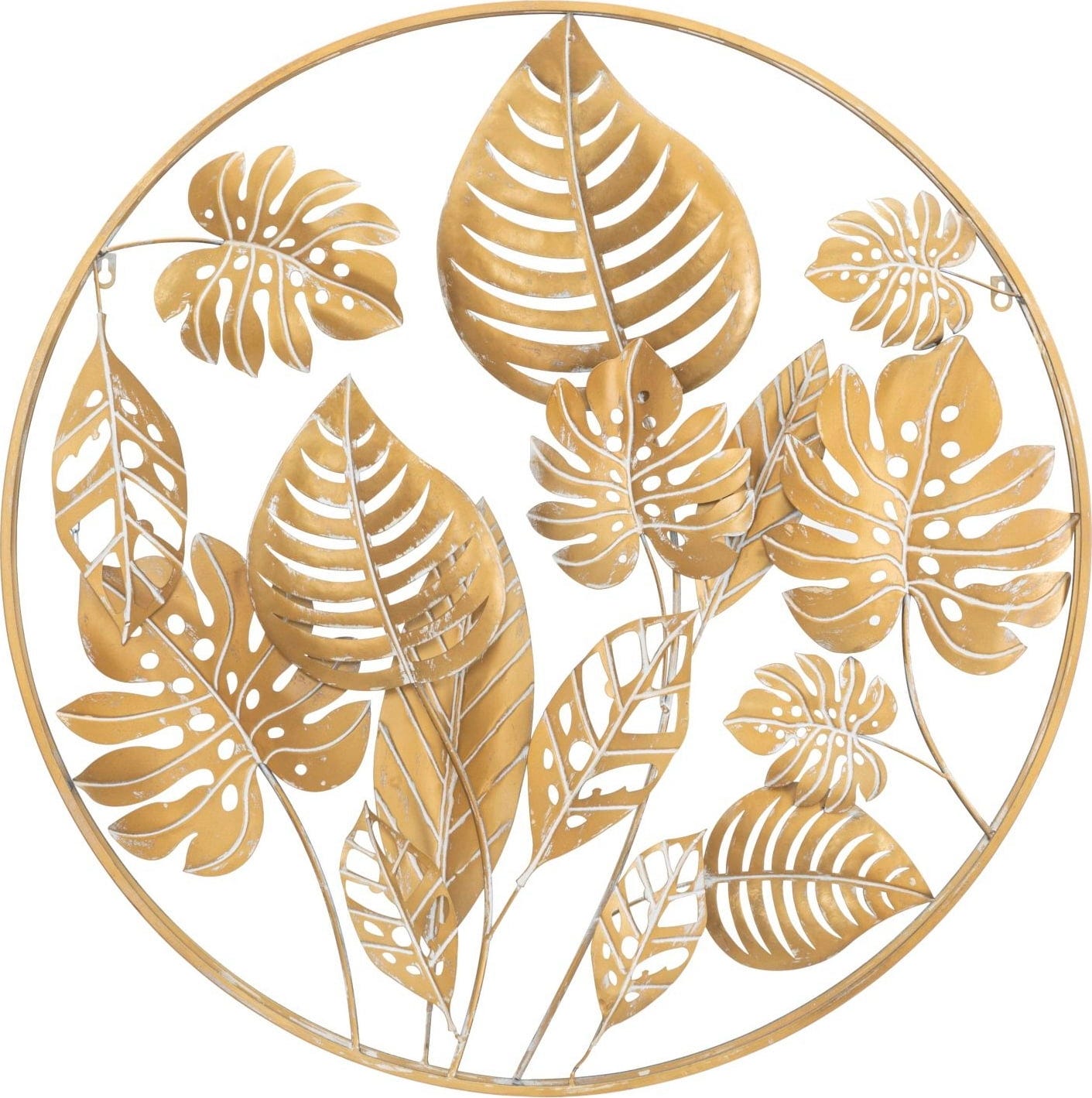 Wprowadź luksusową magię tropików bezpośrednio do swojego domu dzięki dekoracji ściennej Jungle marki Mauro Ferretti. Ten dekoracyjny panel 3D wykonany z metalu w kolorze złotym zachwyca kunsztownie ułożonymi liśćmi, zamkniętymi w harmonijnej, kolistej strukturze. Szczegółowe motywy monstery i drobno żyłkowane struktury liści tworzą fascynującą głębię i wprowadzają żywą, egzotyczną dynamikę na Twoją ścianę.