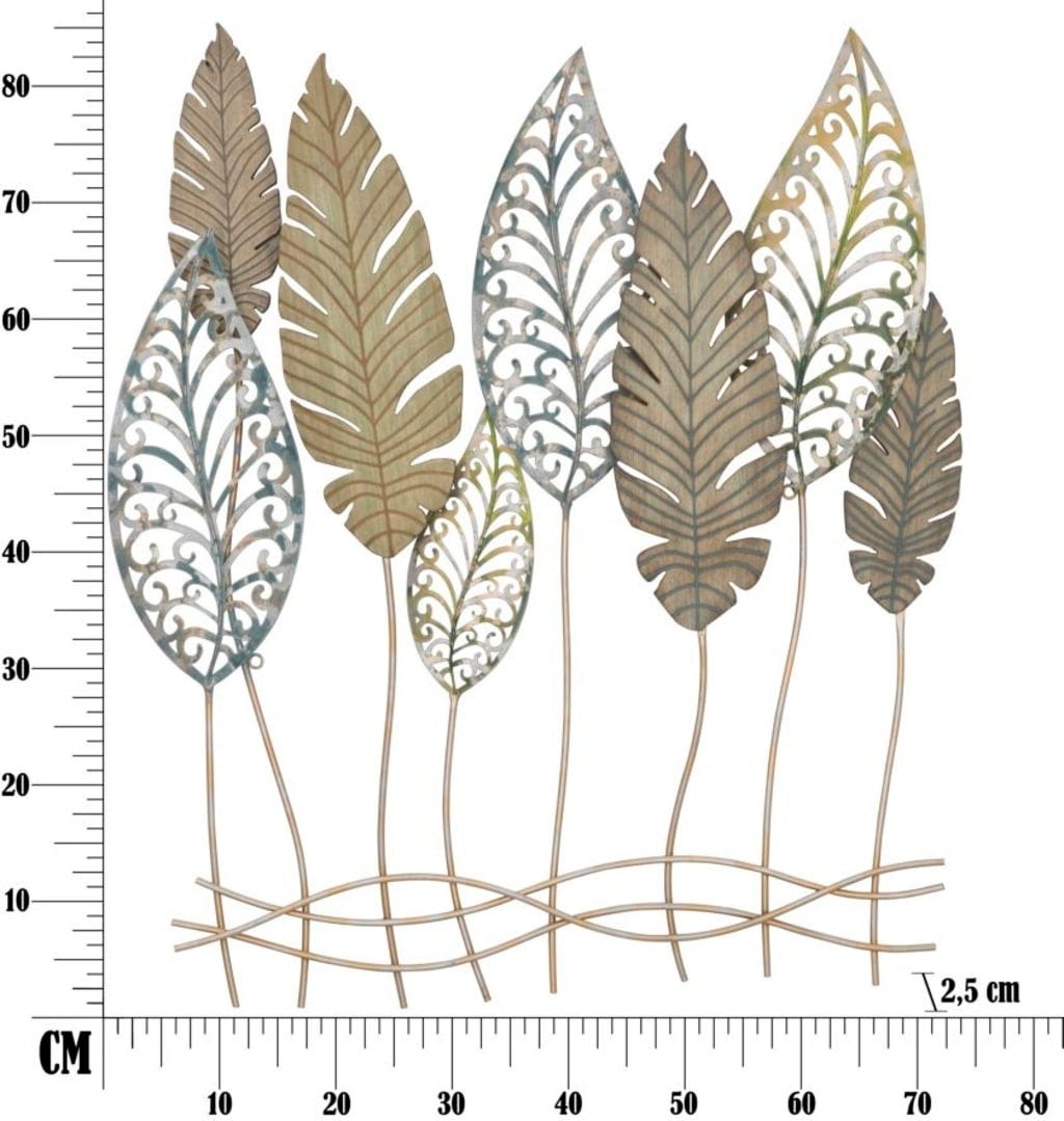 Nadaj swoim ścianom wyjątkową duszę dzięki dekoracji ściennej Liście -C- marki Mauro Ferretti. Ten panel 3D łączy wysokiej jakości metal z elementami z MDF, tworząc haptyczne wrażenie, które jest w pełni zgodne z trendami. Kunsztownie zaaranżowane panele z motywem liści dzięki swoim wzorom vintage natychmiast wprowadzają urokliwą i przytulną atmosferę do każdego pomieszczenia.