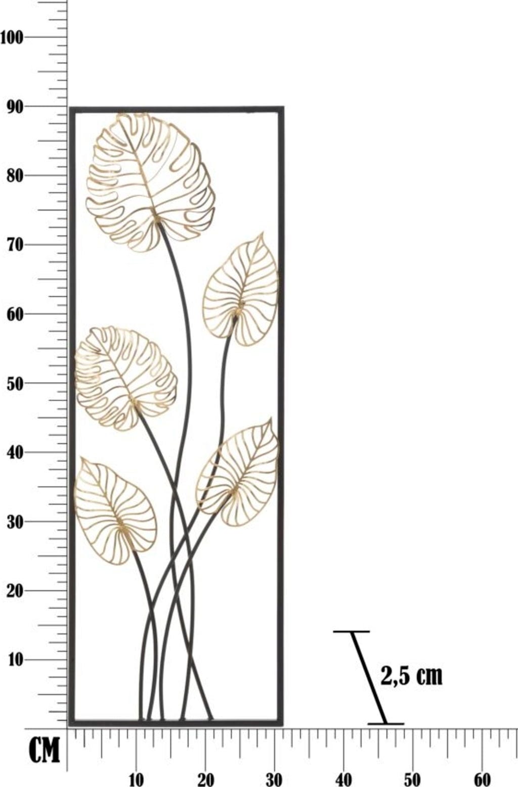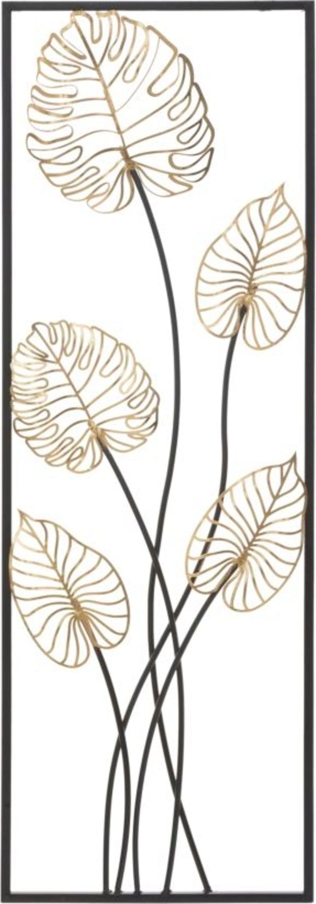 Zmień swoje ściany w ekskluzywne dzieło sztuki dzięki dekoracji ściennej Luxy -A- marki Mauro Ferretti. Ten prostokątny metalowy panel wpisuje się w modny trend trójwymiarowych dekoracji ściennych i nadaje Twojemu domowi natychmiastowy powiew luksusu. Design zachwyca filigranowymi, złotymi liśćmi monstery, które wyglądają jak delikatne struktury szkieletowe i emanują zaskakującą lekkością.