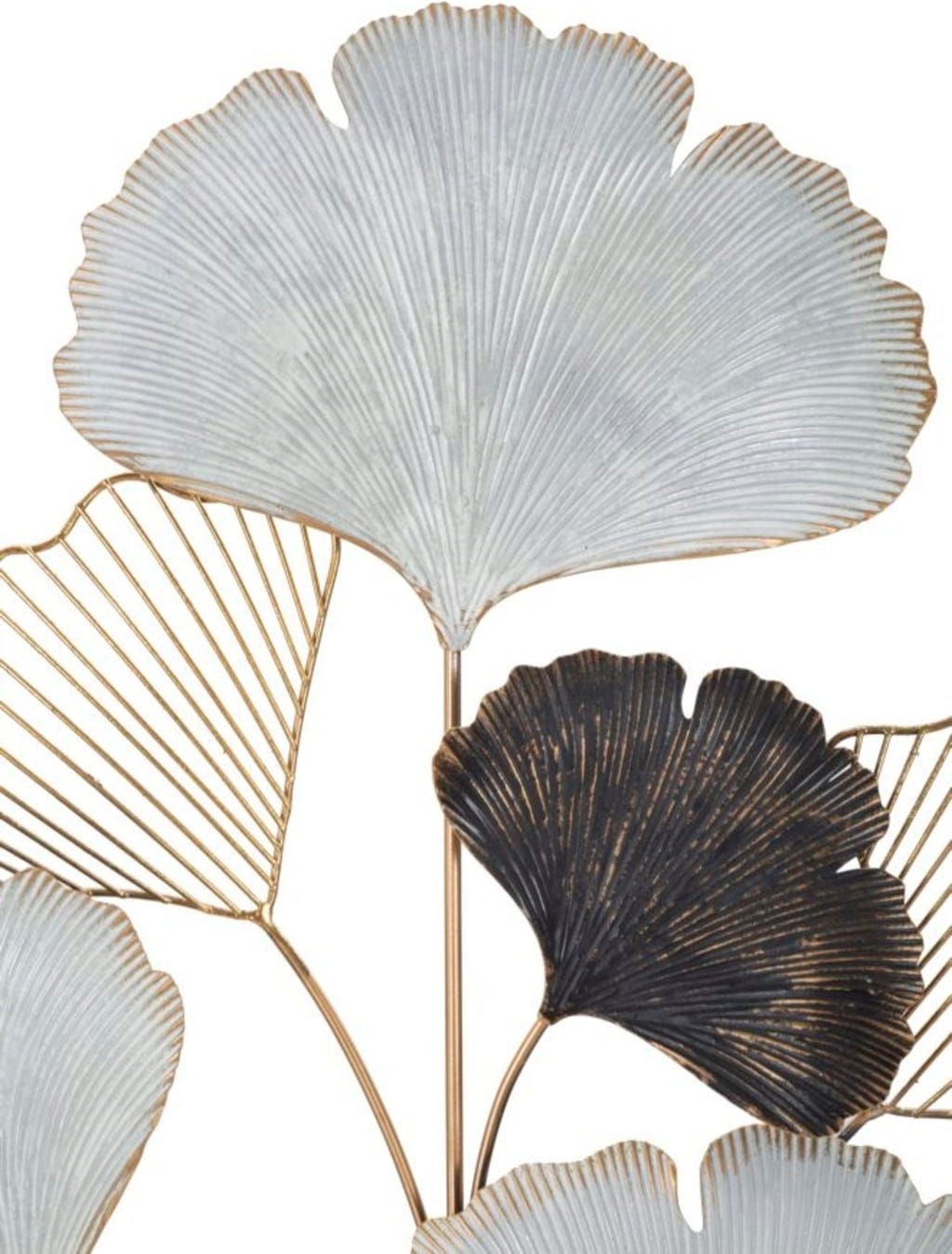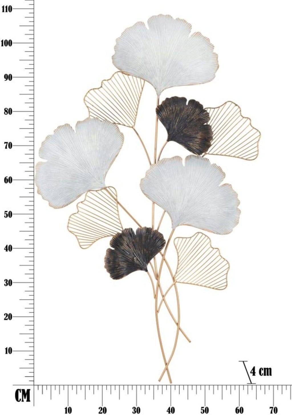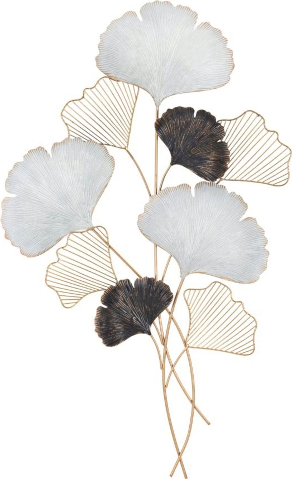 Nadaj swojemu domowi artystyczny i luksusowy charakter dzięki dekoracji ściennej Ory marki Mauro Ferretti. Ten metalowy obiekt 3D wykorzystuje popularny motyw miłorzębu, przekształcając go w nowoczesną dekorację ścienną. Design zachwyca harmonijnym połączeniem jasnych, białych powierzchni, głębokich czarnych akcentów i szlachetnych złotych detali.