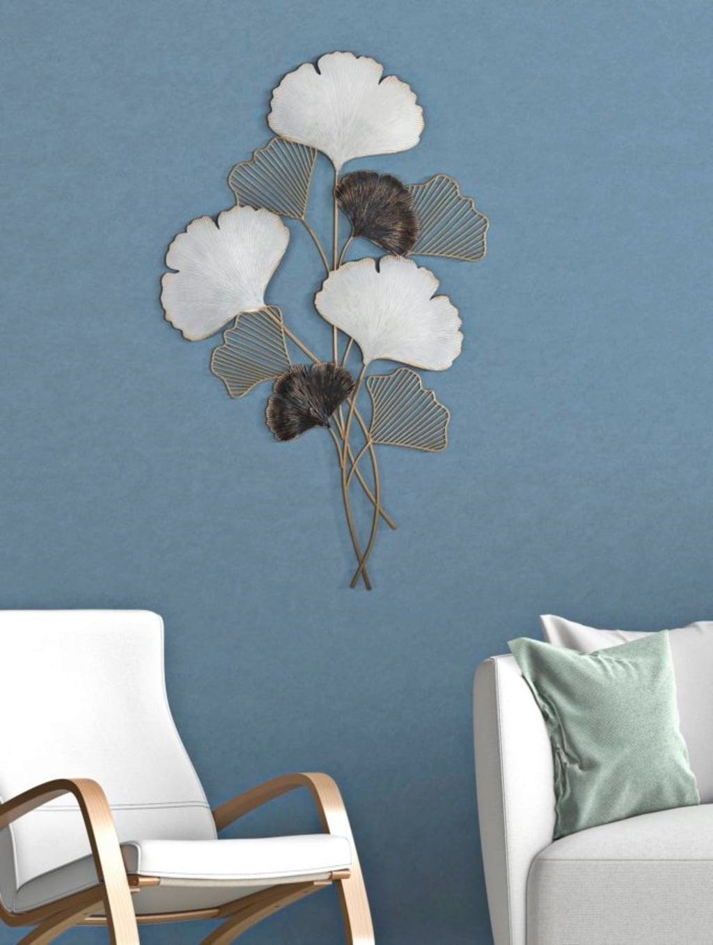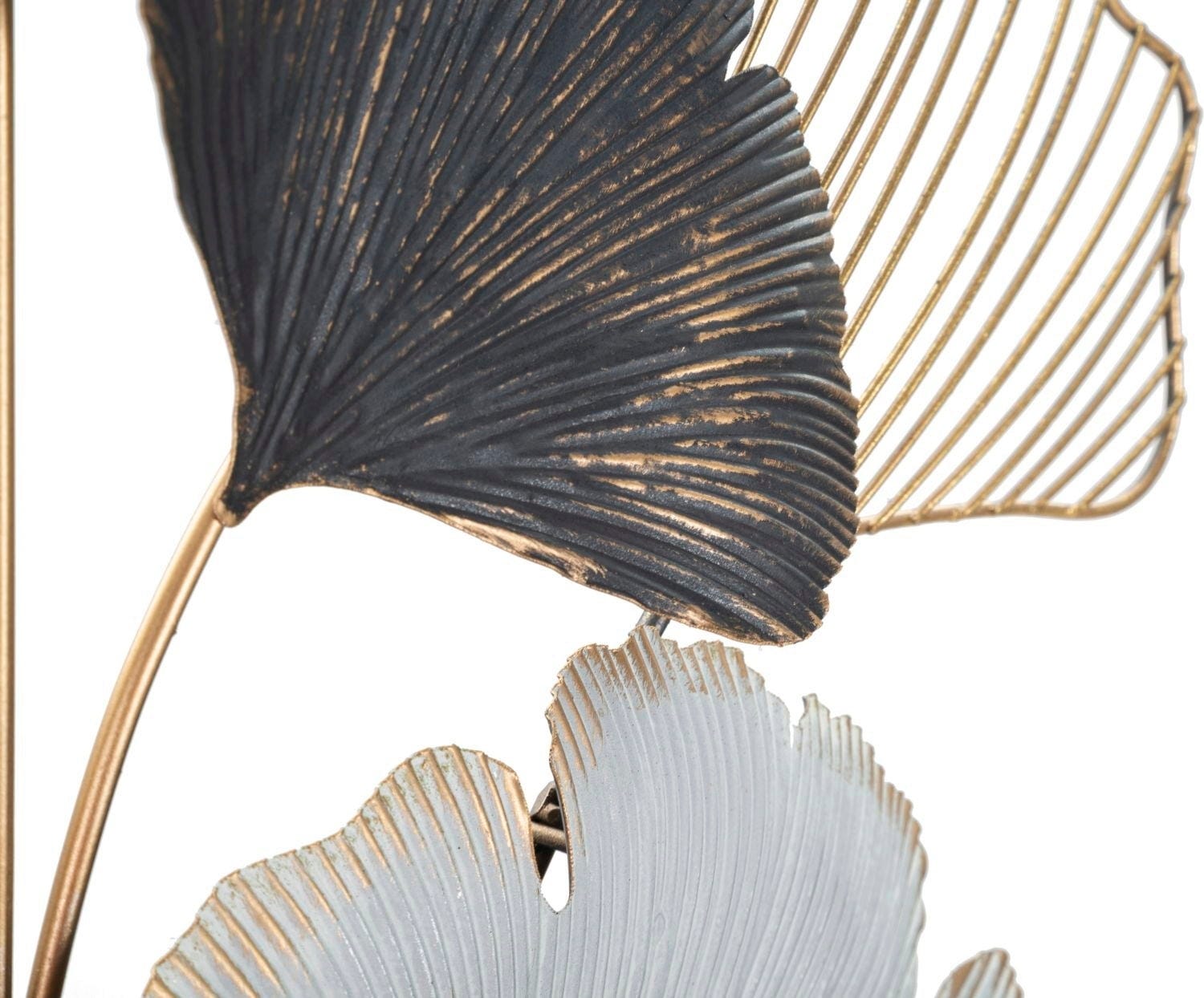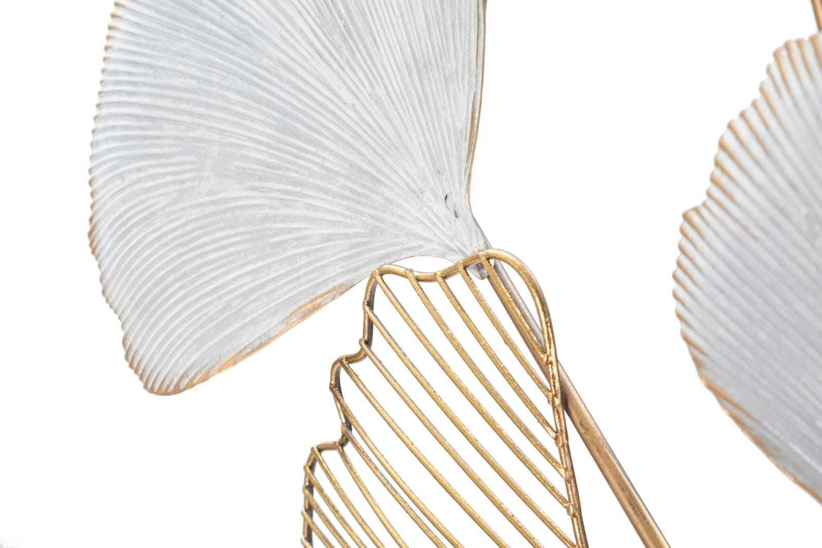 Nadaj swojemu domowi artystyczny i luksusowy charakter dzięki dekoracji ściennej Ory marki Mauro Ferretti. Ten metalowy obiekt 3D wykorzystuje popularny motyw miłorzębu, przekształcając go w nowoczesną dekorację ścienną. Design zachwyca harmonijnym połączeniem jasnych, białych powierzchni, głębokich czarnych akcentów i szlachetnych złotych detali.