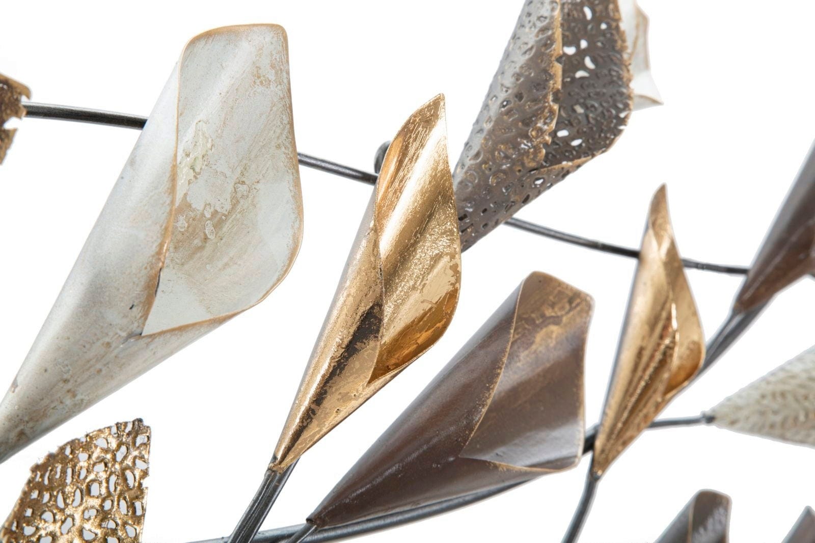 Nadaj swojemu wnętrzu żywą, a zarazem luksusową atmosferę dzięki dekoracji ściennej Ramo marki Mauro Ferretti. Ten imponujący metalowy panel 3D przełamuje konwencjonalne formy i wprowadza na ścianę zaskakującą dynamikę. Naturalistyczny design przypomina gałęzie łagodnie kołyszące się na wietrze, ozdobione kunsztownymi liśćmi w kształcie kielichów.