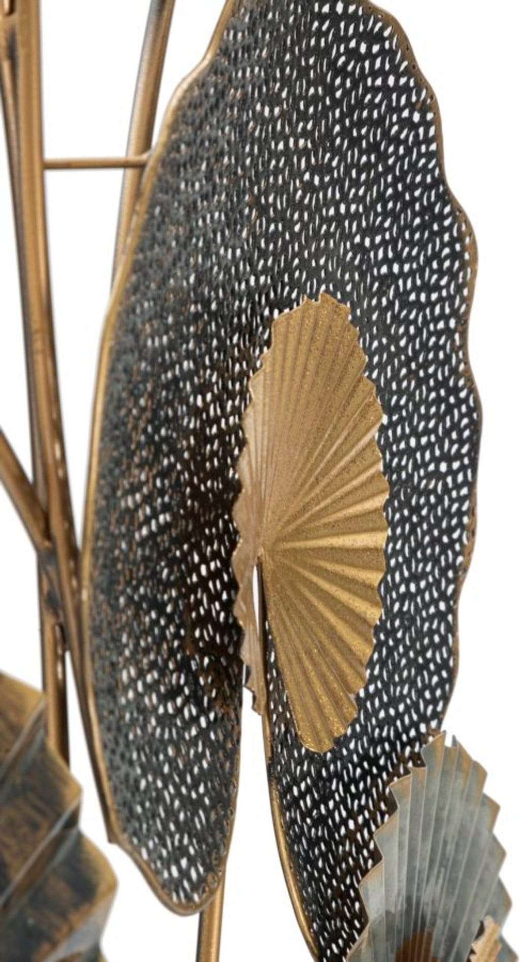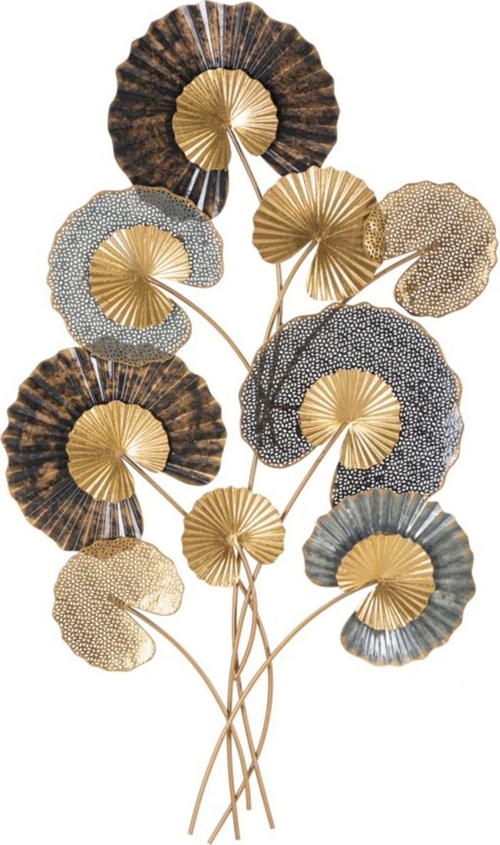 Odkryj nowy wymiar aranżacji ścian dzięki dekoracji ściennej Web -C- marki Mauro Ferretti. Ten imponujący metalowy panel 3D dzięki swojej eleganckiej kompozycji wprowadza do Twojego domu płynną dynamikę. Design zachwyca kunsztownie ułożonymi elementami w kształcie liści, które lśnią w szlachetnym połączeniu błyszczącego złota, stonowanego brązu, głębokiego antracytu i subtelnych struktur siatkowych.