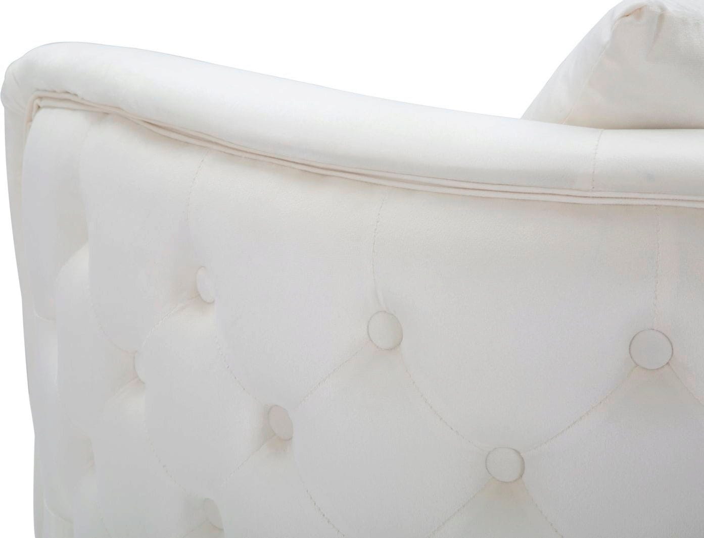 Nadaj swojemu wnętrzu stylowy charakter i zapewnij sobie maksymalny komfort dzięki temu eleganckiemu fotelowi tapicerowanemu! Został on obity luksusową, kremową tkaniną welurową. Dzięki swojej obszernej formie i wygodnym podłokietnikom oferuje idealne miejsce do relaksu.