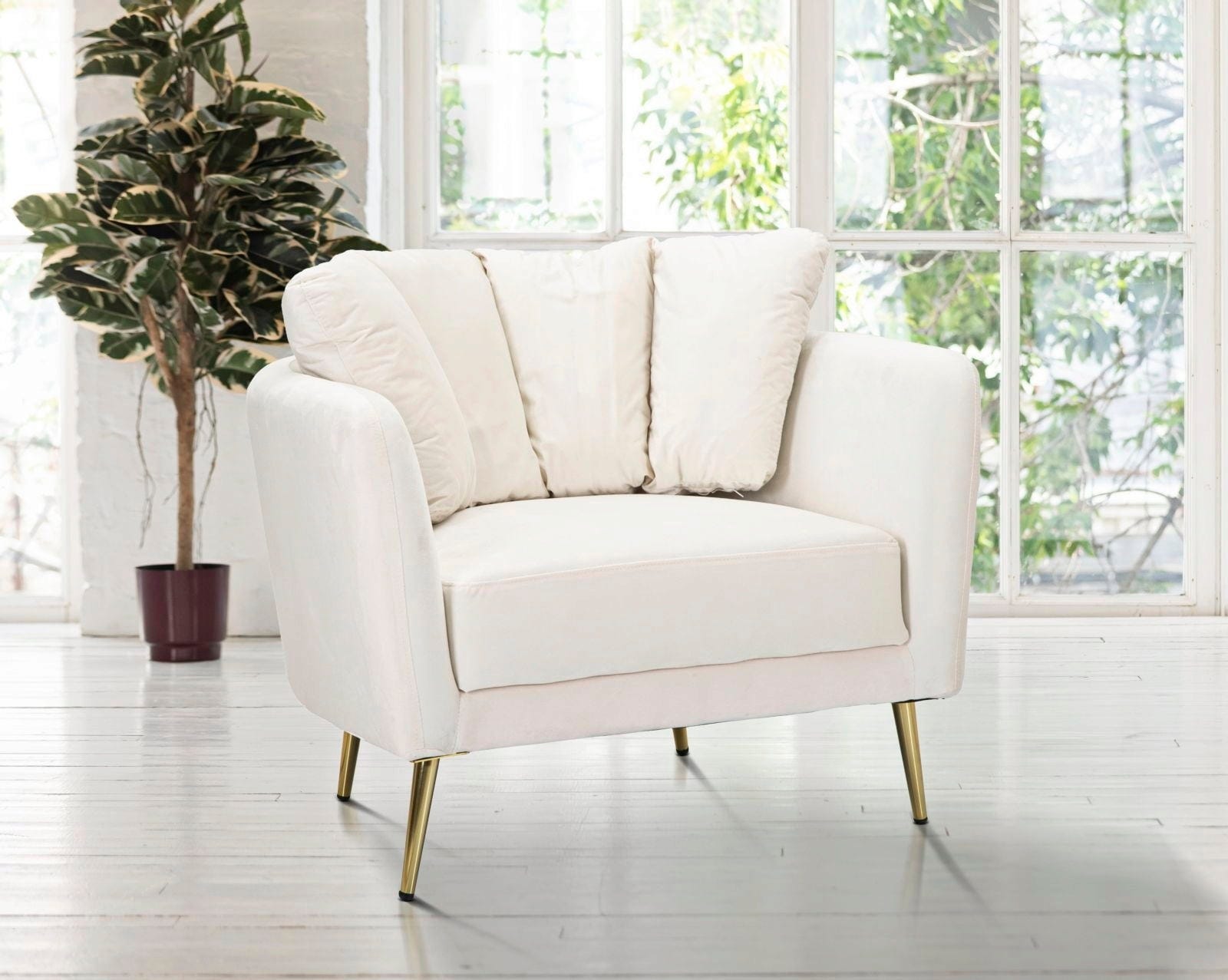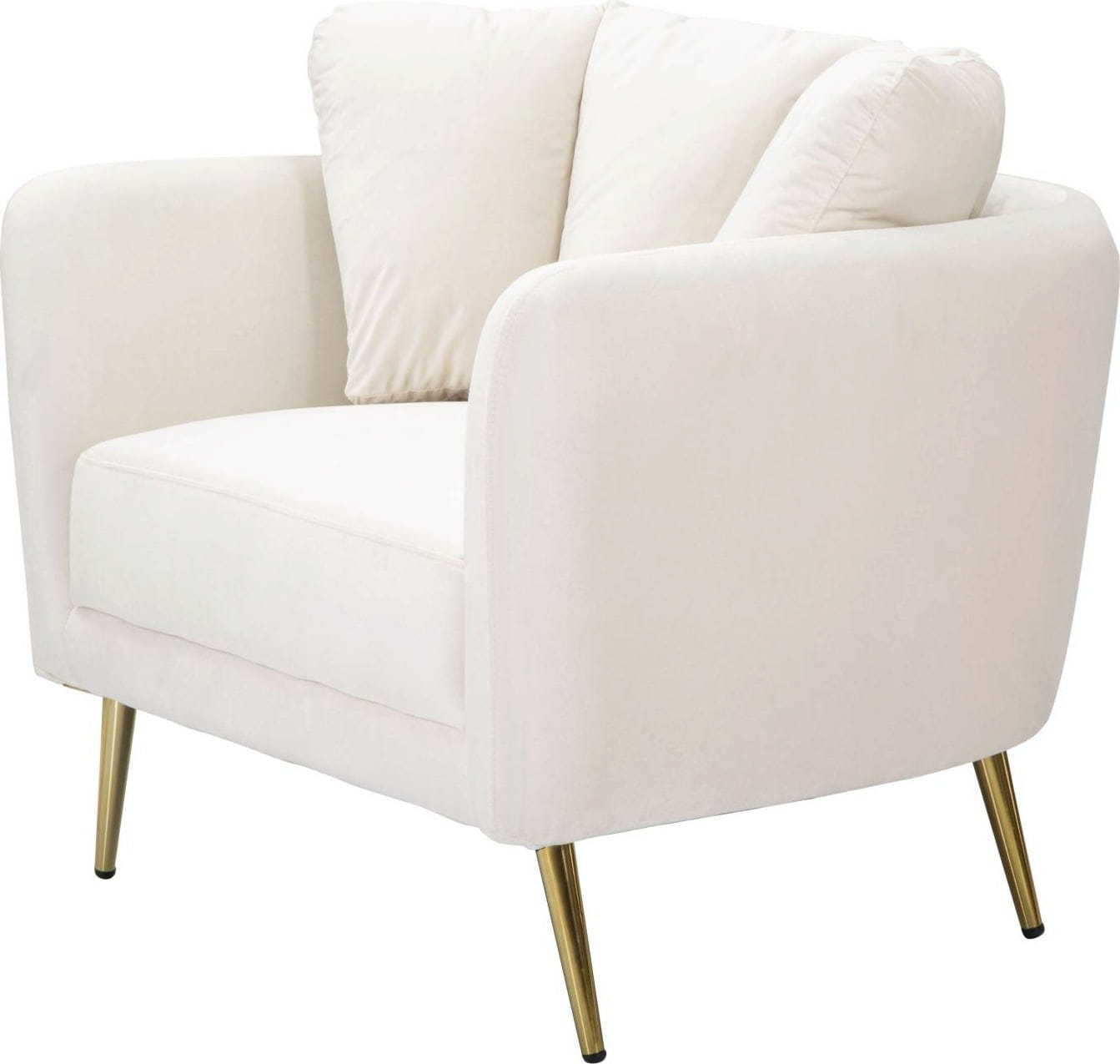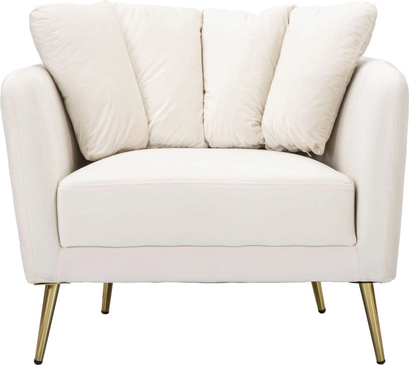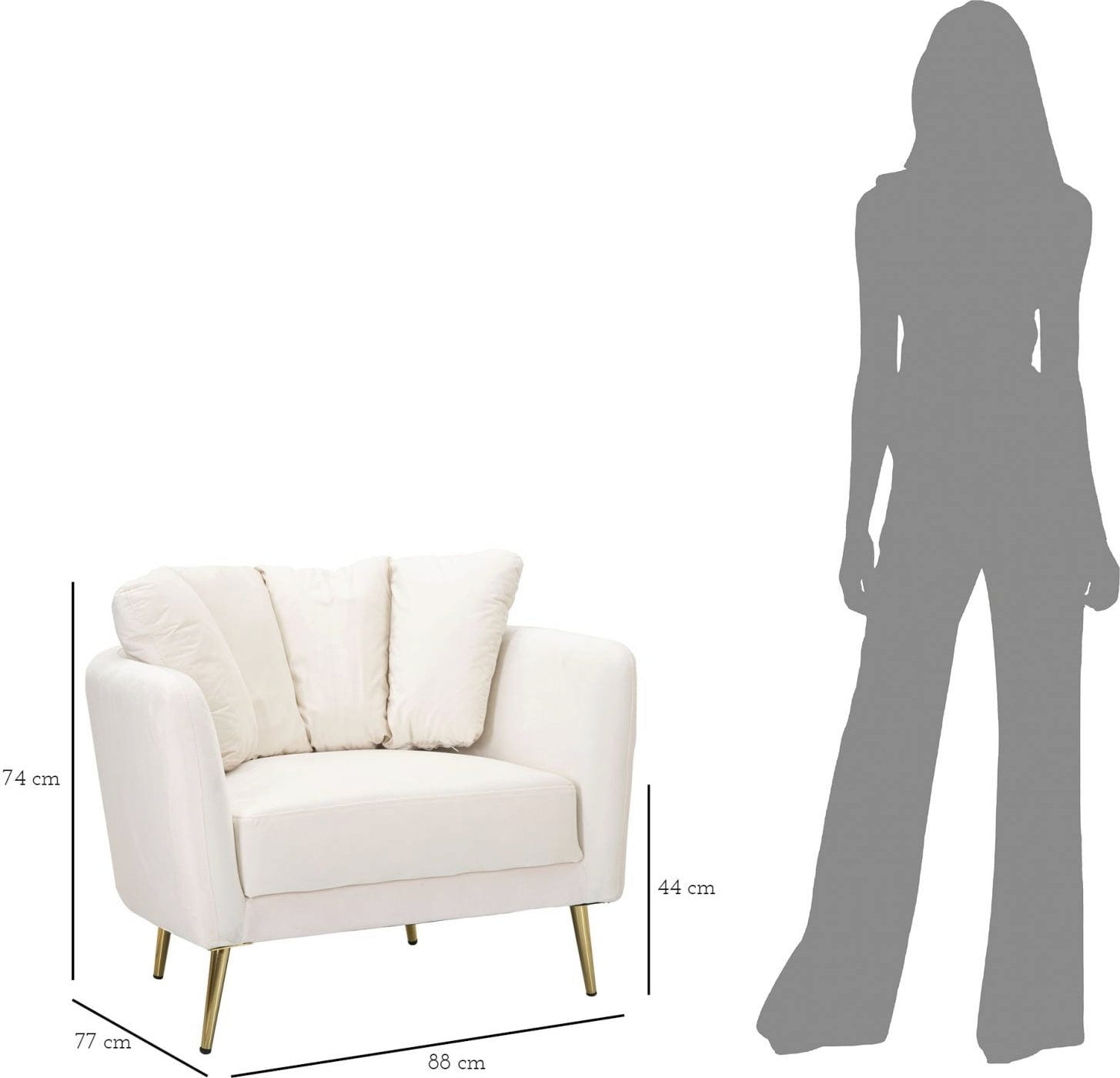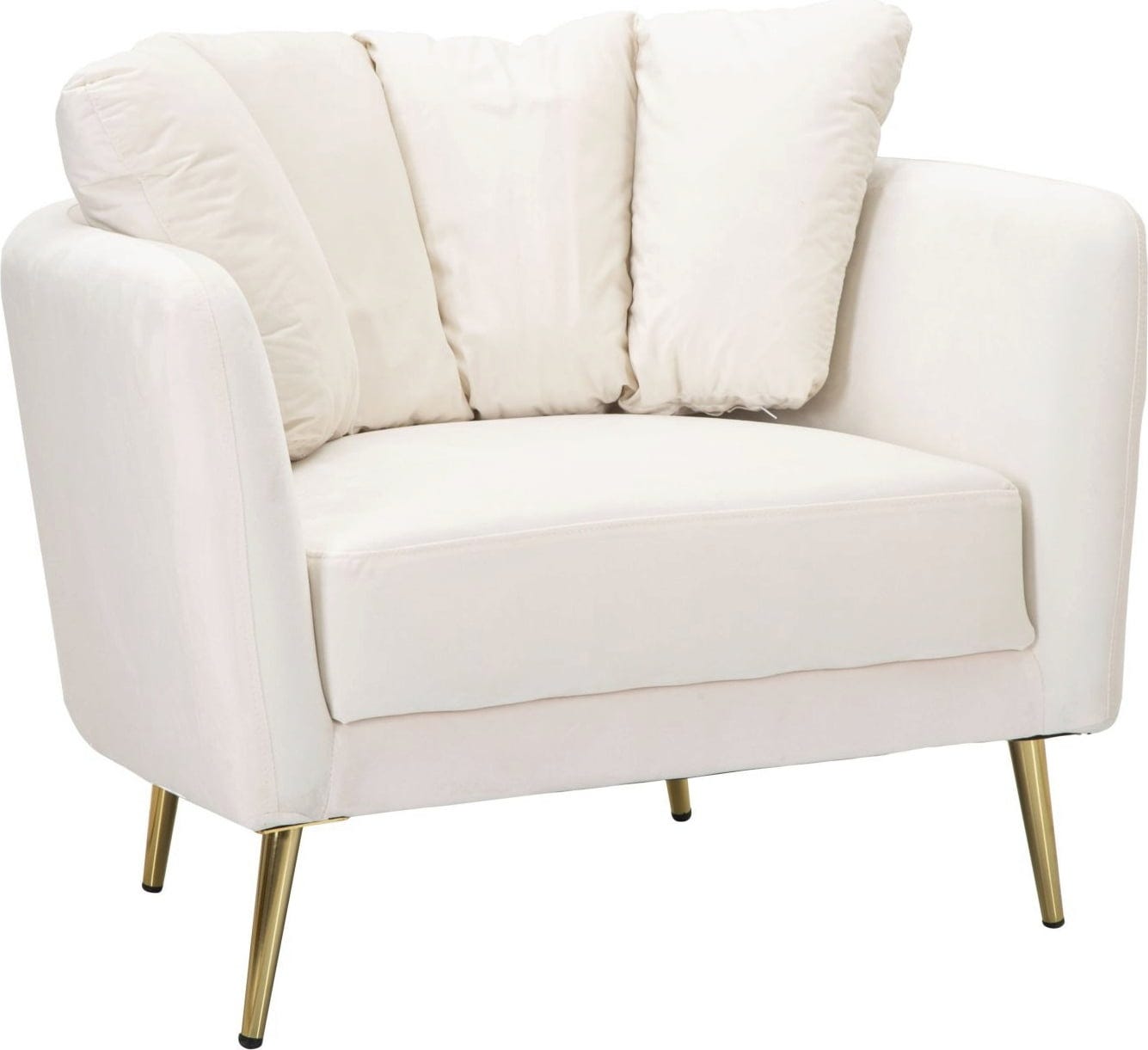 Wygląd idealnie dopełniają smukłe, błyszczące złote metalowe nogi, które nadają fotelowi nowoczesny akcent i odrobinę glamour. Zarówno jako pojedynczy mebel, jak i uzupełnienie sofy – ten fotel jest idealny, aby nadać każdemu pomieszczeniu stylowy i komfortowy charakter.